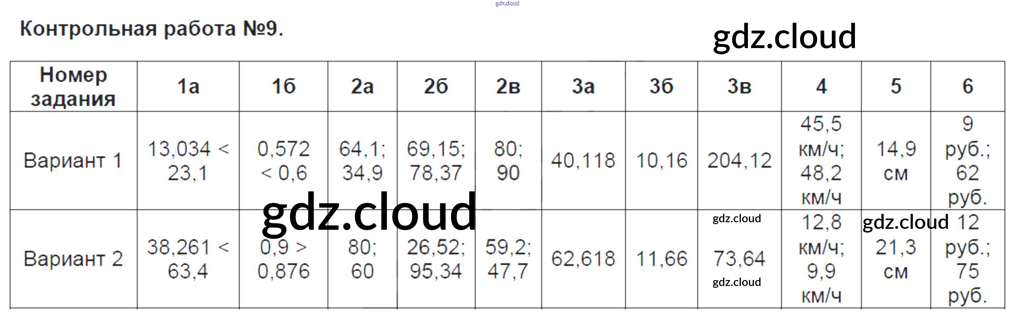 Ответ на задание КР №9 Контрольно-измерительные материалы (КИМ) Математика за 5 (пятый) класс Глазков, Ахременкова, Гаиашвили 2014