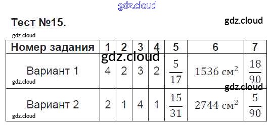 Ответ на задание Тест №15 Контрольно-измерительные материалы (КИМ) Математика за 5 (пятый) класс Глазков, Ахременкова, Гаиашвили 2014