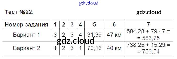 Ответ на задание Тест №22 Контрольно-измерительные материалы (КИМ) Математика за 5 (пятый) класс Глазков, Ахременкова, Гаиашвили 2014