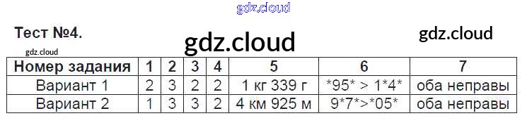 Ответ на задание Тест №4 Контрольно-измерительные материалы (КИМ) Математика за 5 (пятый) класс Глазков, Ахременкова, Гаиашвили 2014