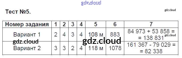 Ответ на задание Тест №5 Контрольно-измерительные материалы (КИМ) Математика за 5 (пятый) класс Глазков, Ахременкова, Гаиашвили 2014