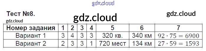 Ответ на задание Тест №8 Контрольно-измерительные материалы (КИМ) Математика за 5 (пятый) класс Глазков, Ахременкова, Гаиашвили 2014