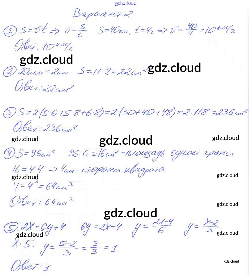 КР-6. Варианты Ответы к контрольным работам по Математике 5 класс Самостоятельные и контрольные работы Попов УМК Экзамен