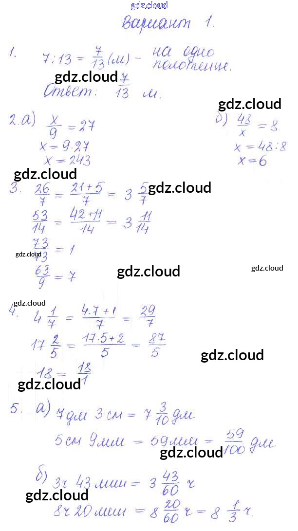 Ответ на задание 1 Контрольные и самостоятельные работы Математика за 5 (пятый) класс Журавлев, Свентковский УМК 2015