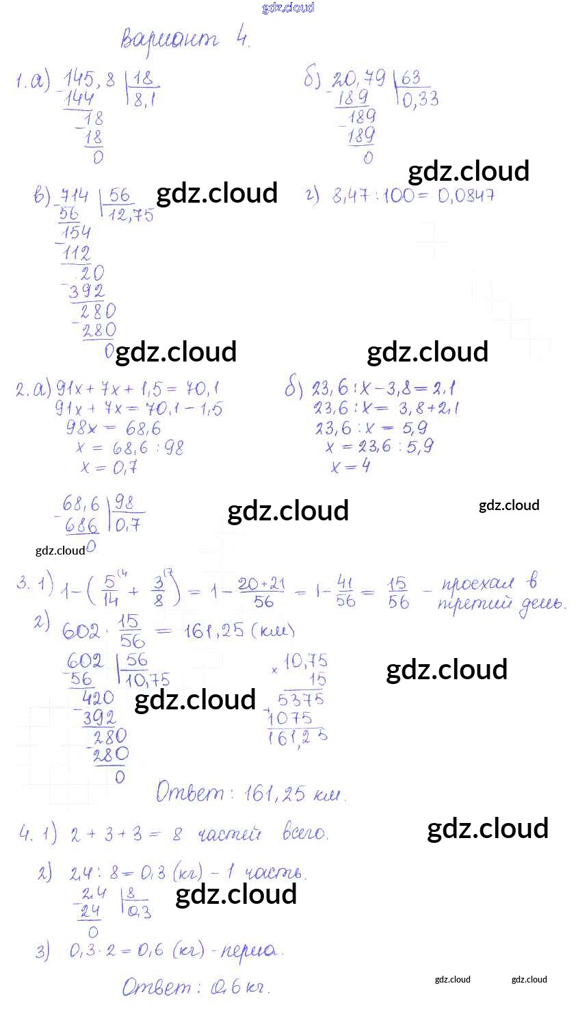 Ответ на задание 4 Контрольные и самостоятельные работы Математика за 5 (пятый) класс Журавлев, Свентковский УМК 2015