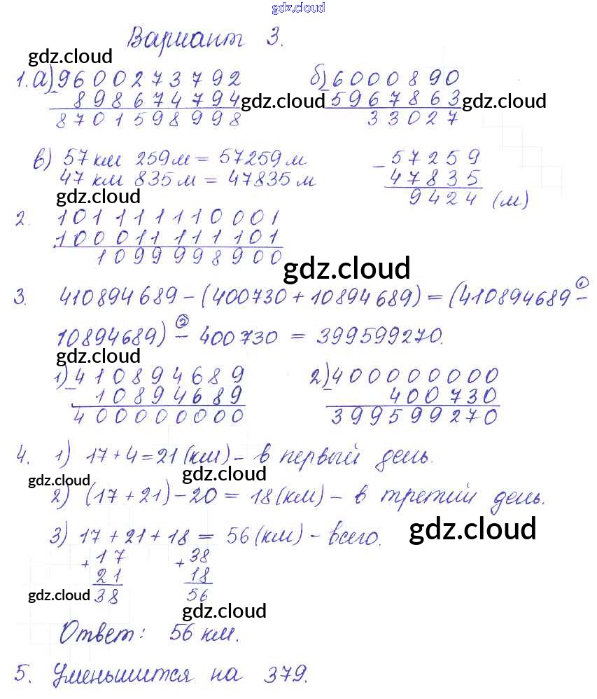 Ответ на задание 3 Контрольные и самостоятельные работы Математика за 5 (пятый) класс Журавлев, Свентковский УМК 2015