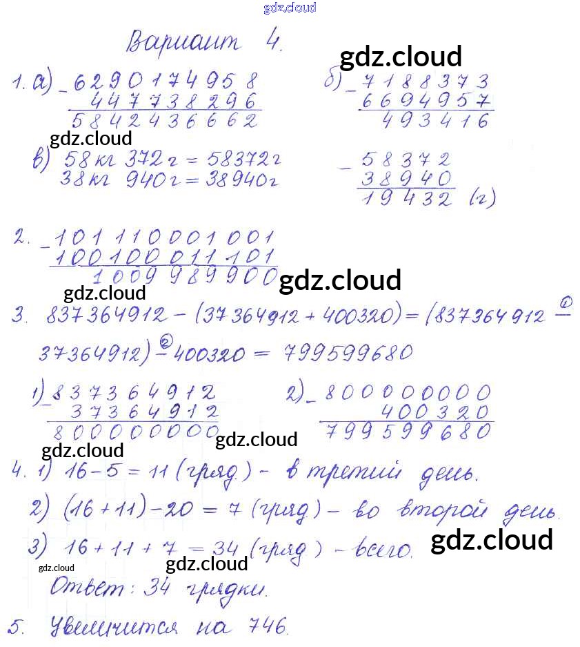 Ответ на задание 4 Контрольные и самостоятельные работы Математика за 5 (пятый) класс Журавлев, Свентковский УМК 2015