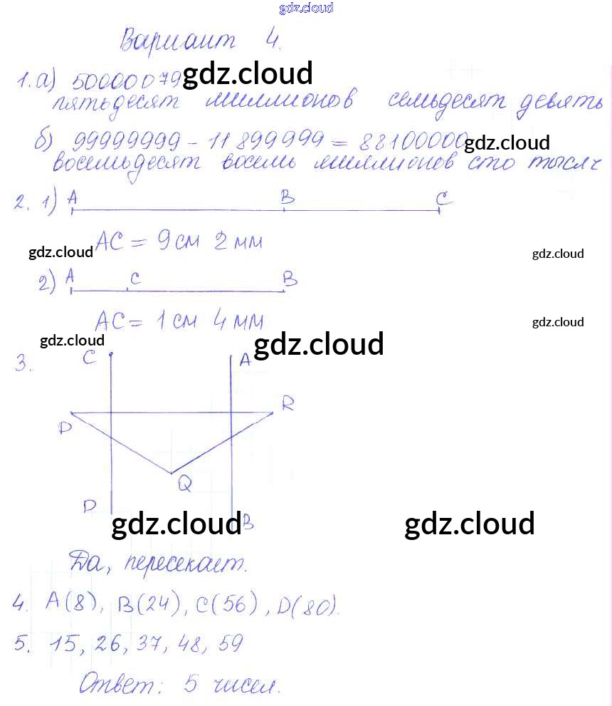 Ответ на задание 4 Контрольные и самостоятельные работы Математика за 5 (пятый) класс Журавлев, Свентковский УМК 2015