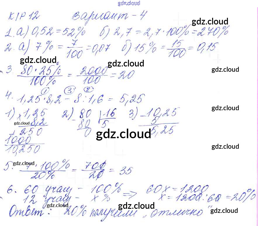 Ответы к КР-12. Варианты по Математике 5 класс Контрольные работы Дудницын УМК Экзамен