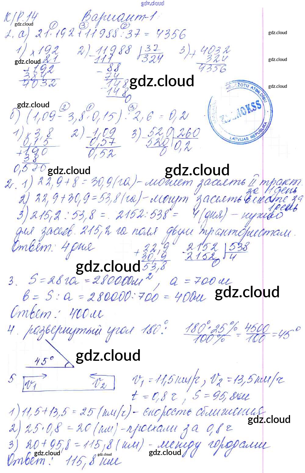 Ответы к КР-14. Варианты по Математике 5 класс Контрольные работы Дудницын УМК Экзамен