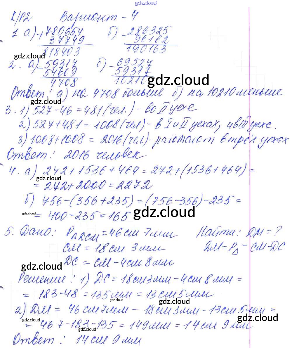 Ответ на задание 4 Контрольные работы Математика за 5 (пятый) класс Дудницын, Кронгауз УМК 2011 ФГОС онлайн и без номера телефона.