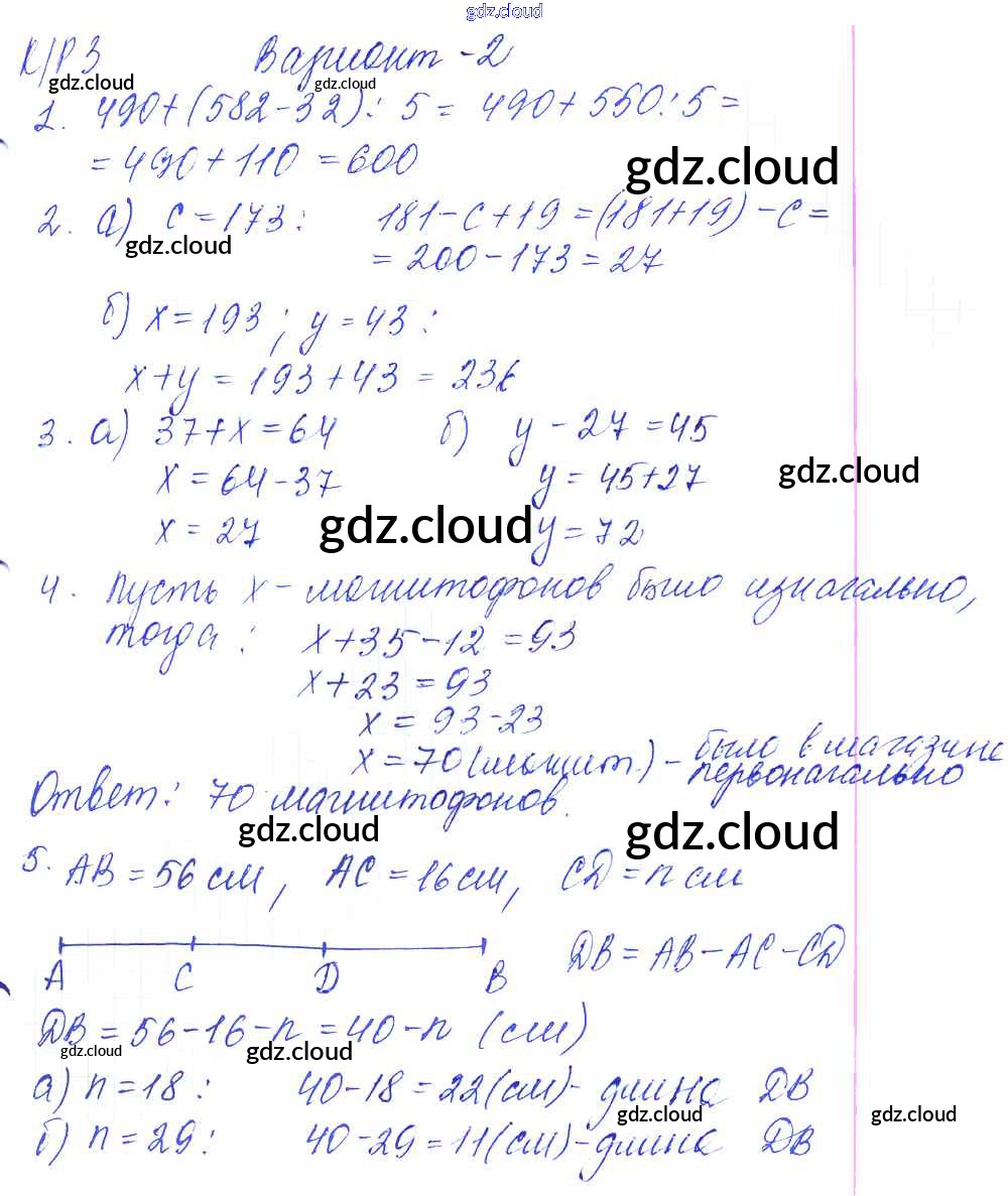 Ответы к КР-3. Варианты по Математике 5 класс Контрольные работы Дудницын УМК Экзамен