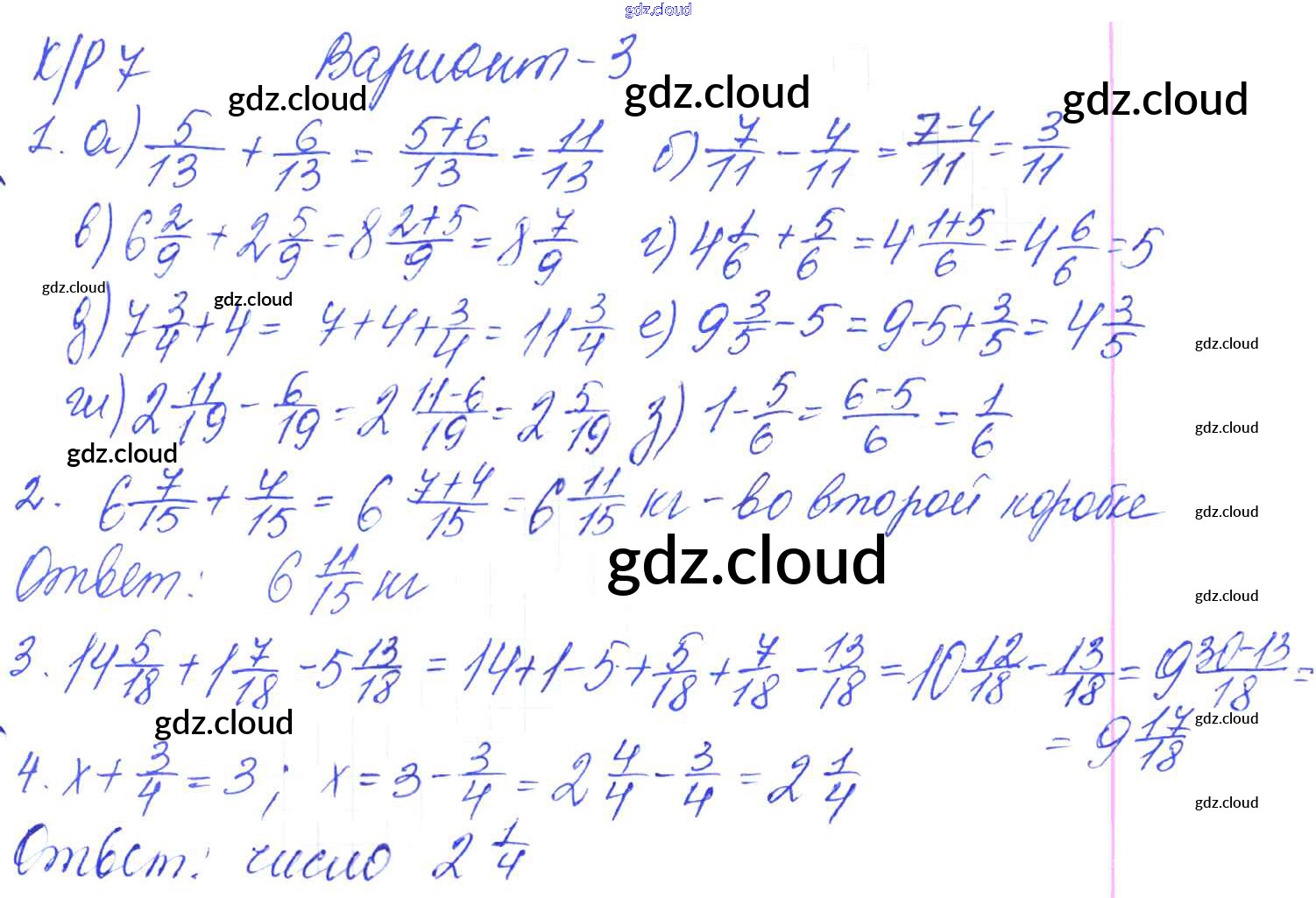 Ответы к КР-7. Варианты по Математике 5 класс Контрольные работы Дудницын УМК Экзамен