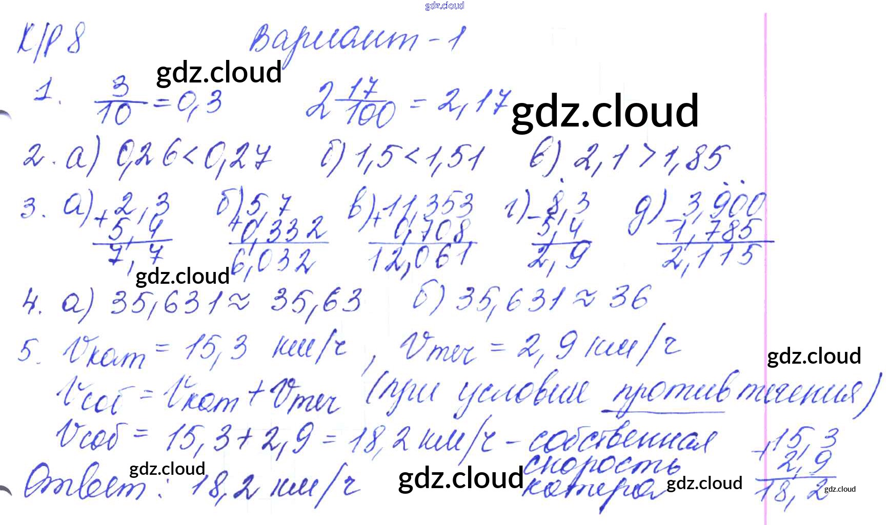 Ответы к КР-8. Варианты по Математике 5 класс Контрольные работы Дудницын УМК Экзамен