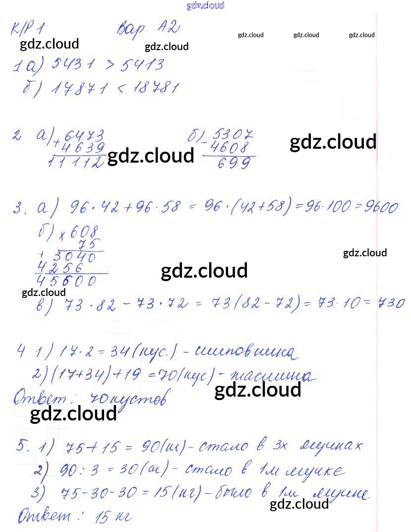 Ответы к КР-1. Варианты по Математике 5 класс Контрольные работы Ерина УМК Экзамен