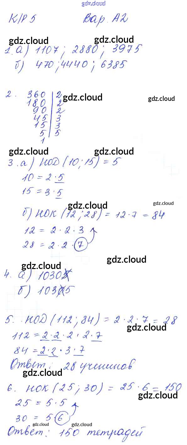 Ответы к КР-5. Варианты по Математике 5 класс Контрольные работы Ерина УМК Экзамен