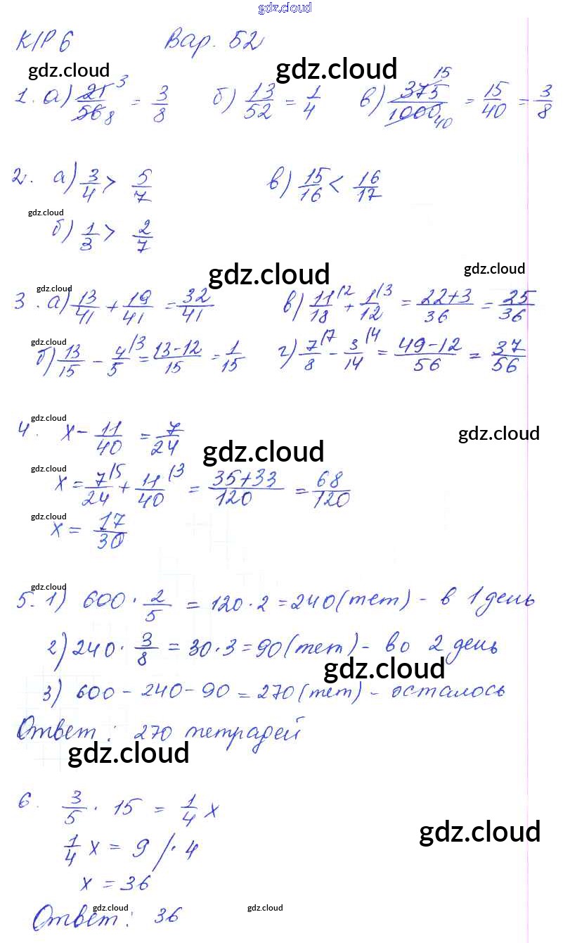Ответы к КР-6. Варианты по Математике 5 класс Контрольные работы Ерина УМК Экзамен