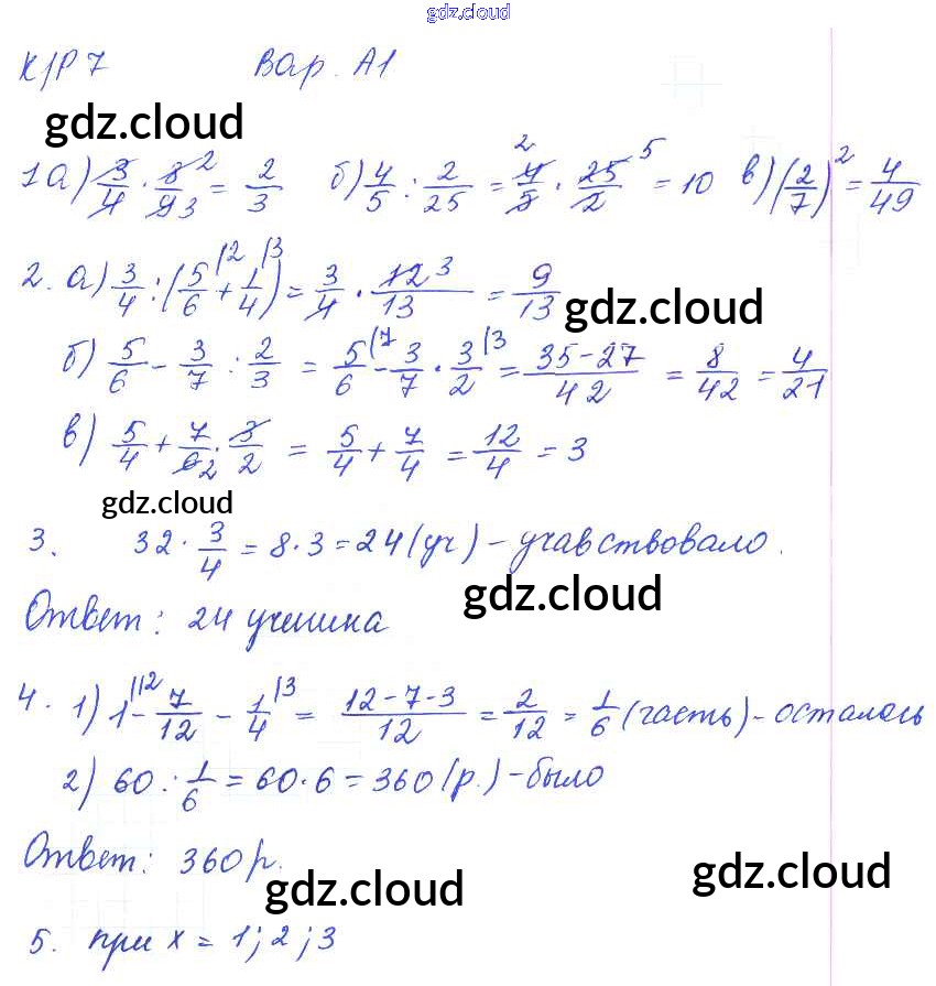 Ответы к КР-7. Варианты по Математике 5 класс Контрольные работы Ерина УМК Экзамен