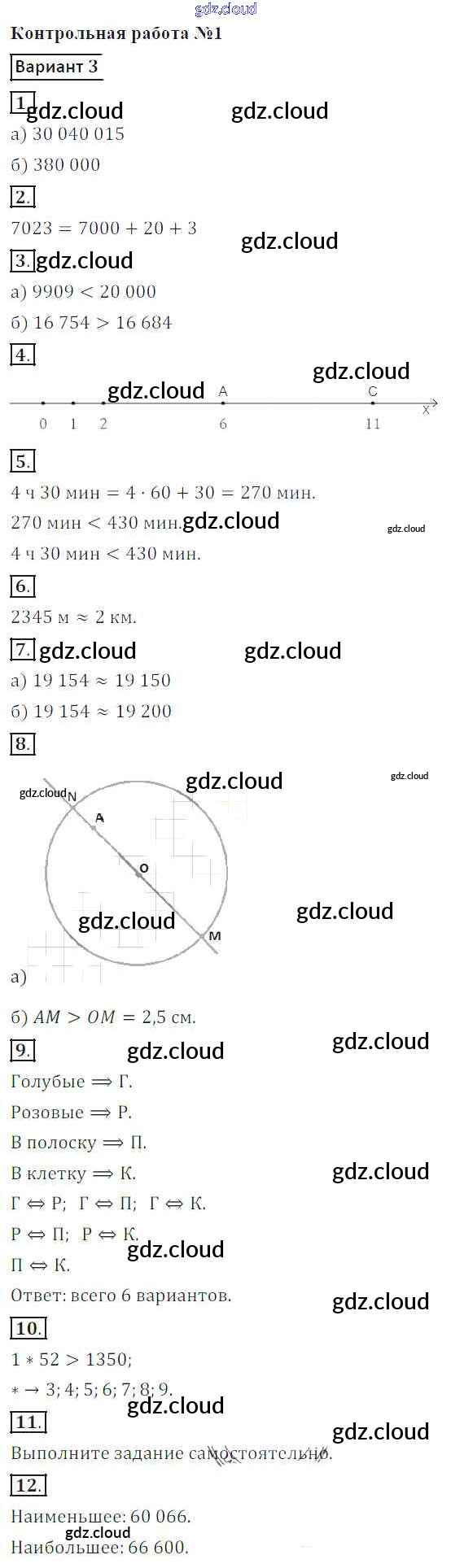 Ответы к КР №1. Натуральные числа. Линии по Математике 5 класс Контрольные работы Кузнецова Просвещение