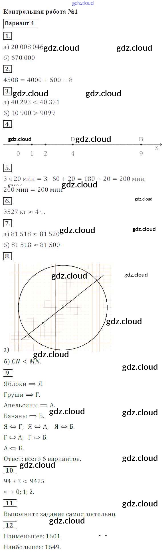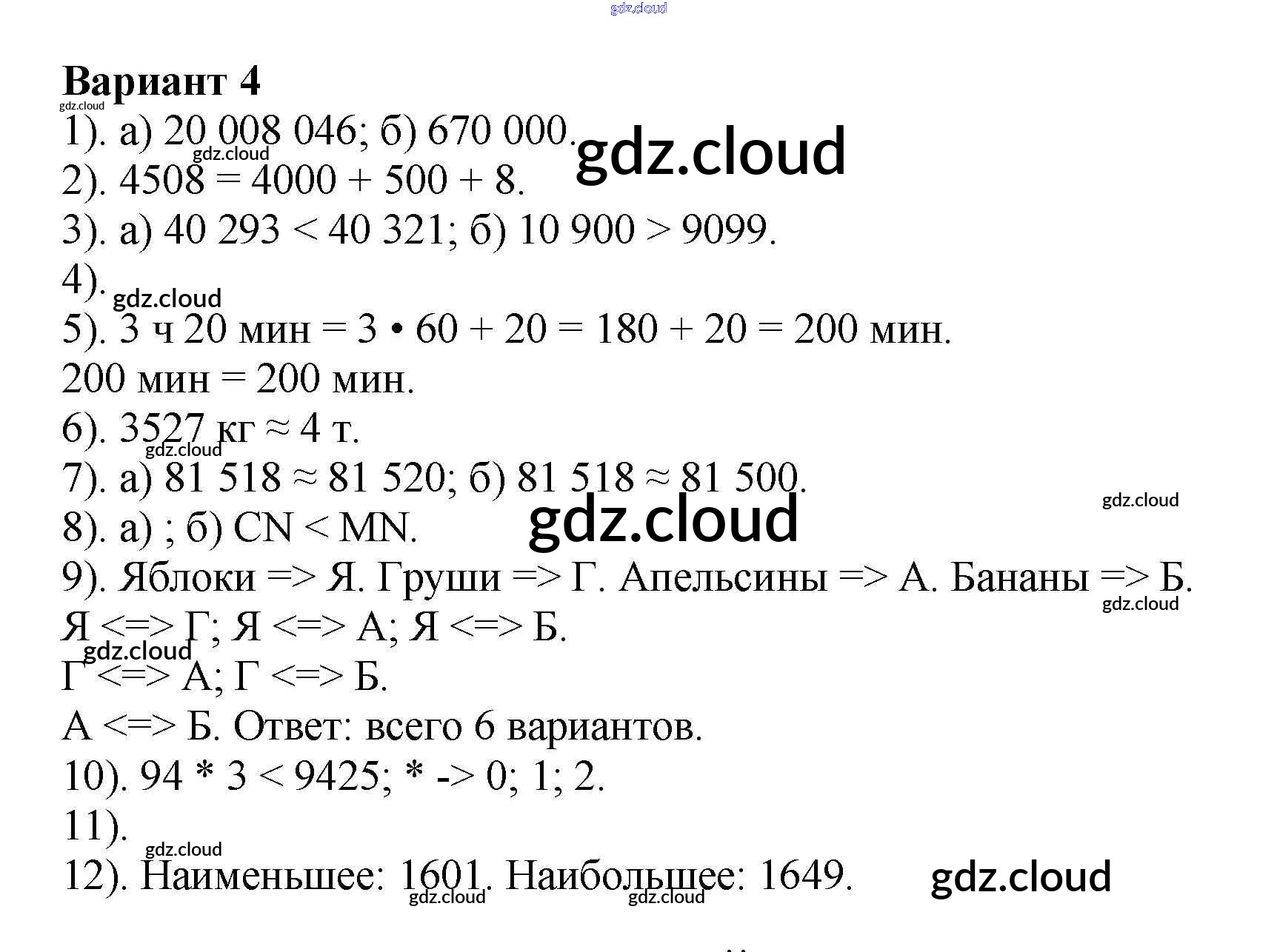 Ответ на задание вариант-4 Контрольные работы Математика за 5 (пятый) класс Кузнецова, Минаева, Рослова, Суворова 2018