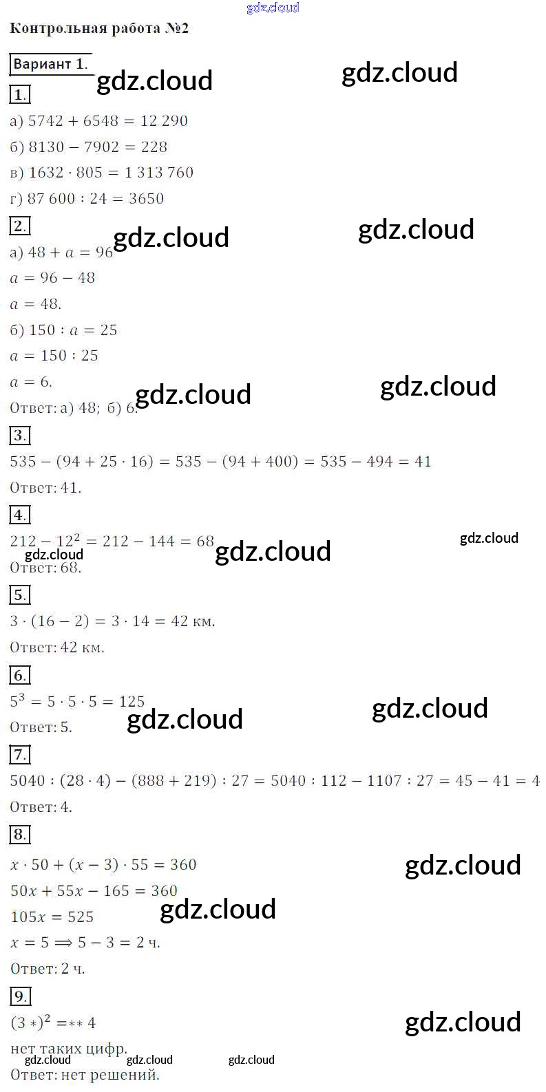 Ответы к КР №2. Действия с натуральными числами по Математике 5 класс Контрольные работы Кузнецова Просвещение