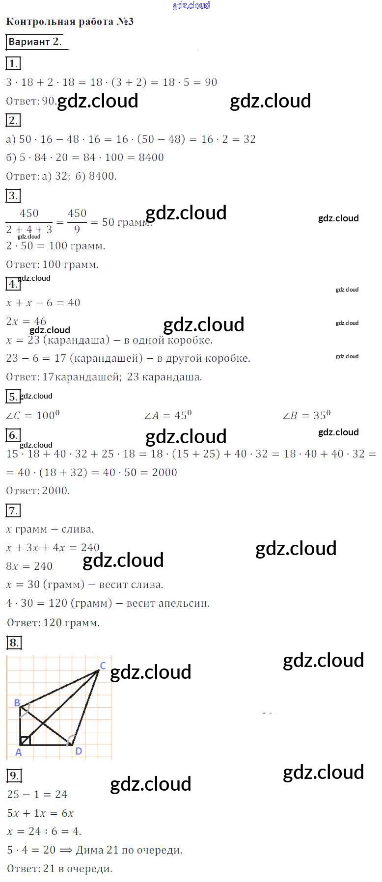 Ответы к КР №3. Использование свойств действий при вычислениях. Углы и многоугольники по Математике 5 класс Контрольные работы Кузнецова Просвещение