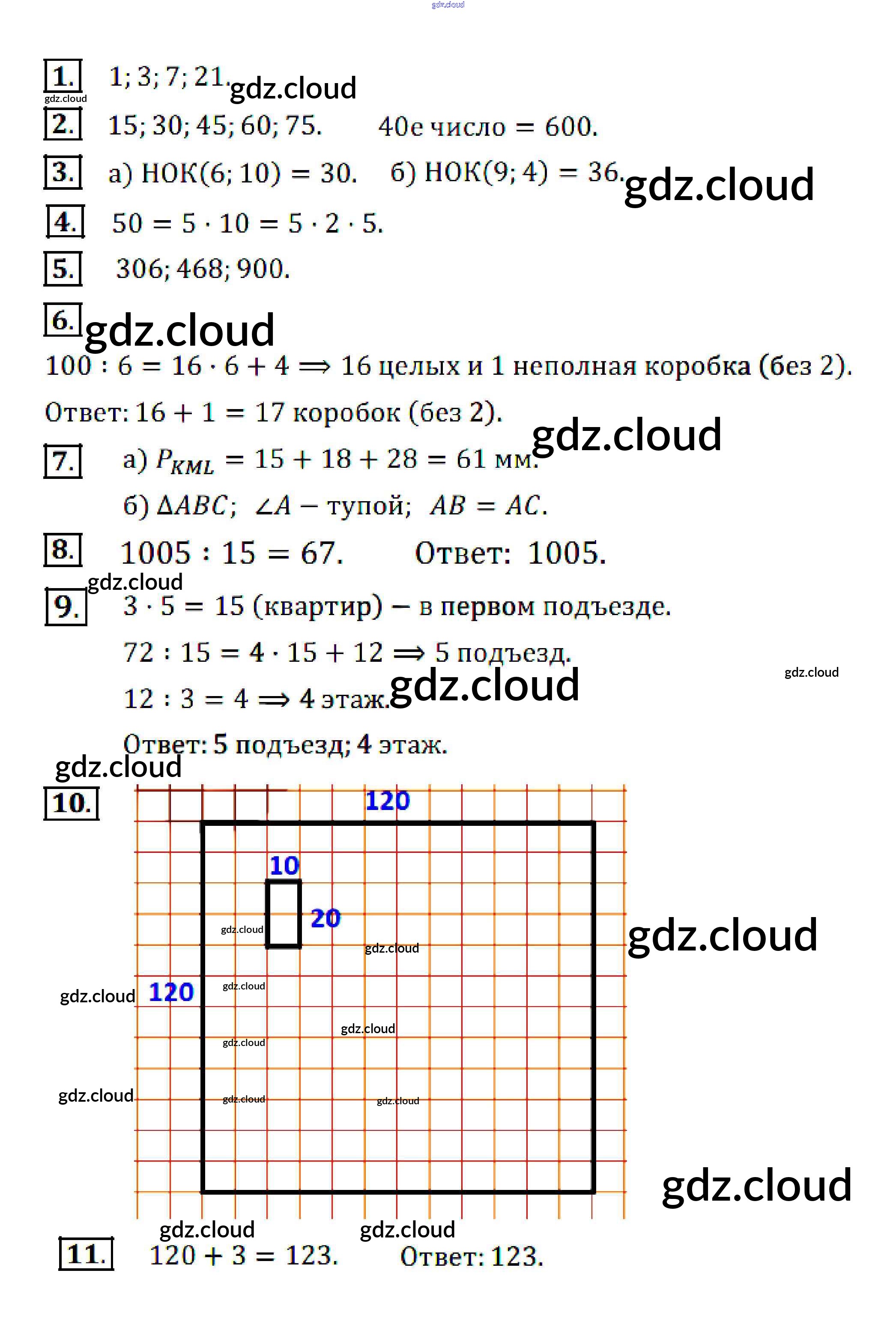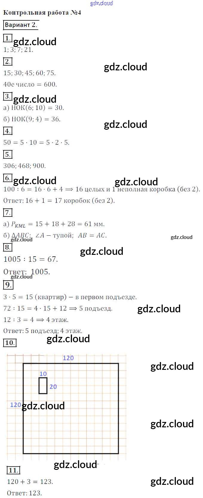 Ответы к КР №4. Делимость чисел. Треугольник и четырехугольники по Математике 5 класс Контрольные работы Кузнецова Просвещение