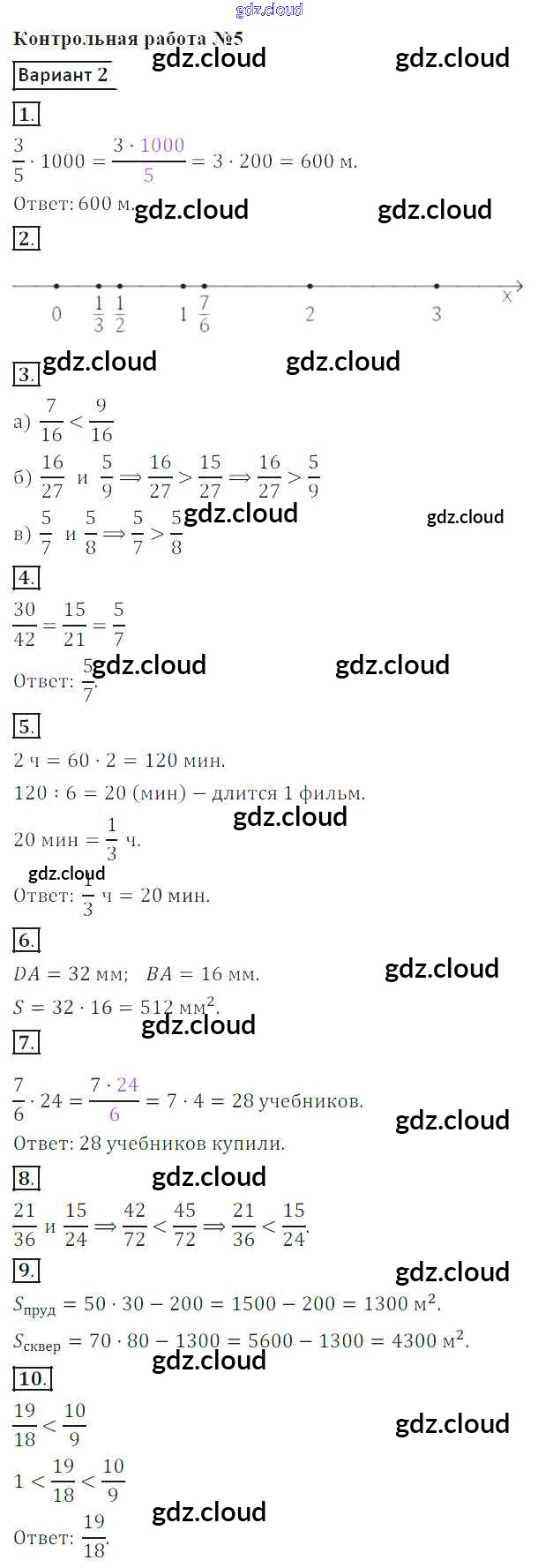 Ответы к КР №5. Дроби. Треугольник и четырехугольники по Математике 5 класс Контрольные работы Кузнецова Просвещение