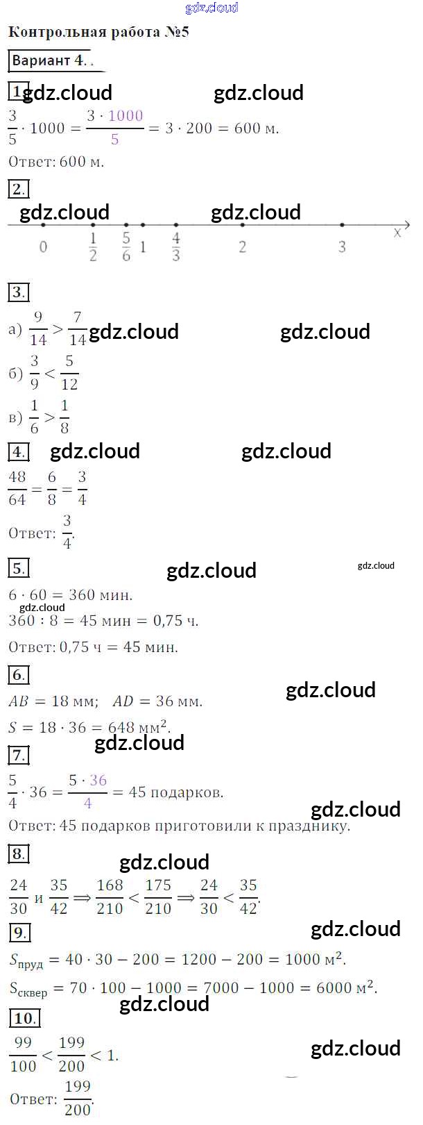 Ответы к КР №5. Дроби. Треугольник и четырехугольники по Математике 5 класс Контрольные работы Кузнецова Просвещение