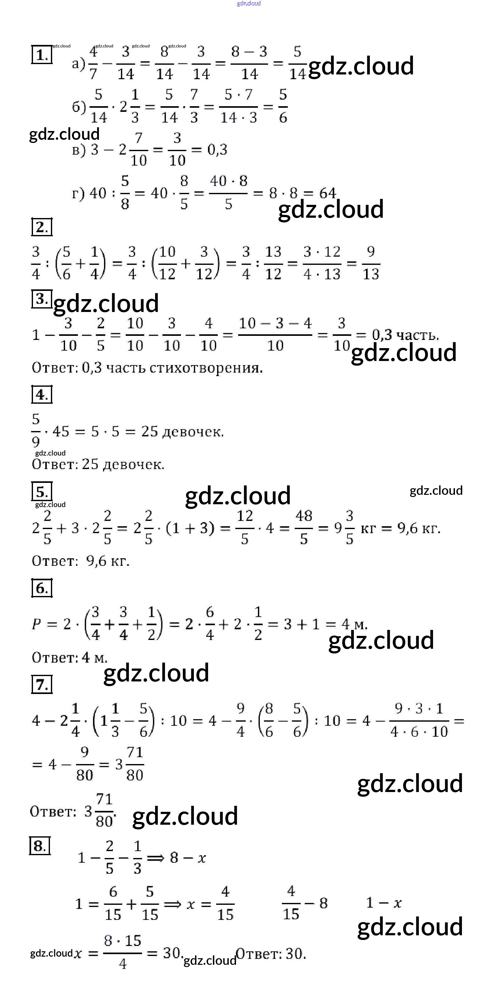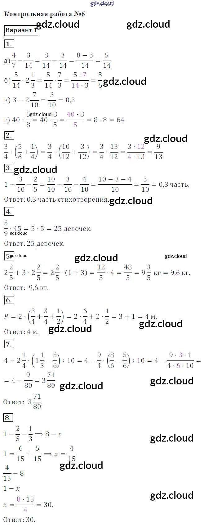 Ответы к КР №6. Действия с дробями по Математике 5 класс Контрольные работы Кузнецова Просвещение