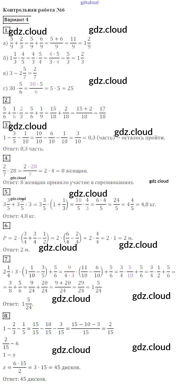 Ответы к КР №6. Действия с дробями по Математике 5 класс Контрольные работы Кузнецова Просвещение