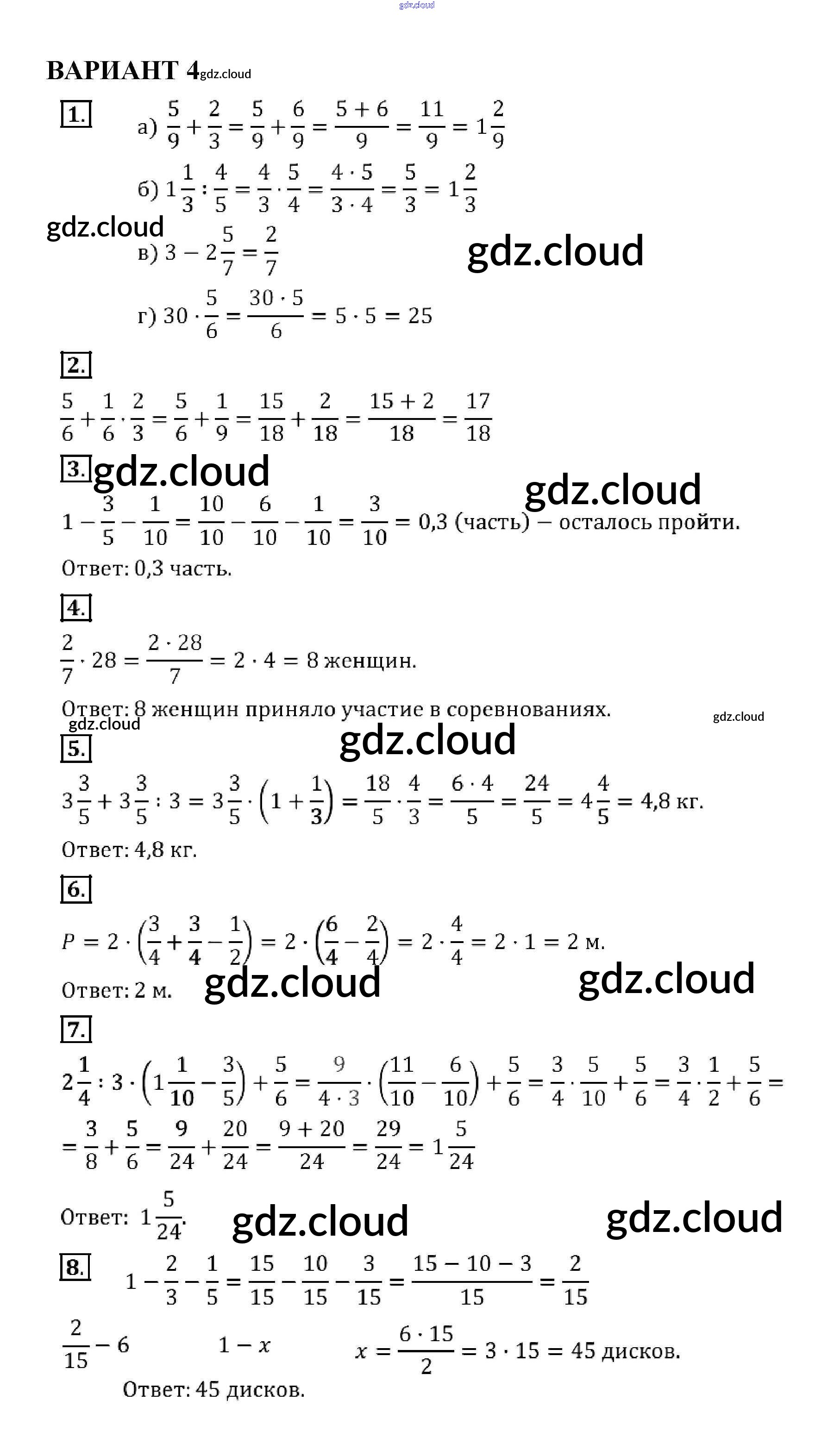 Ответ на задание вариант-4 Контрольные работы Математика за 5 (пятый) класс Кузнецова, Минаева, Рослова, Суворова 2018