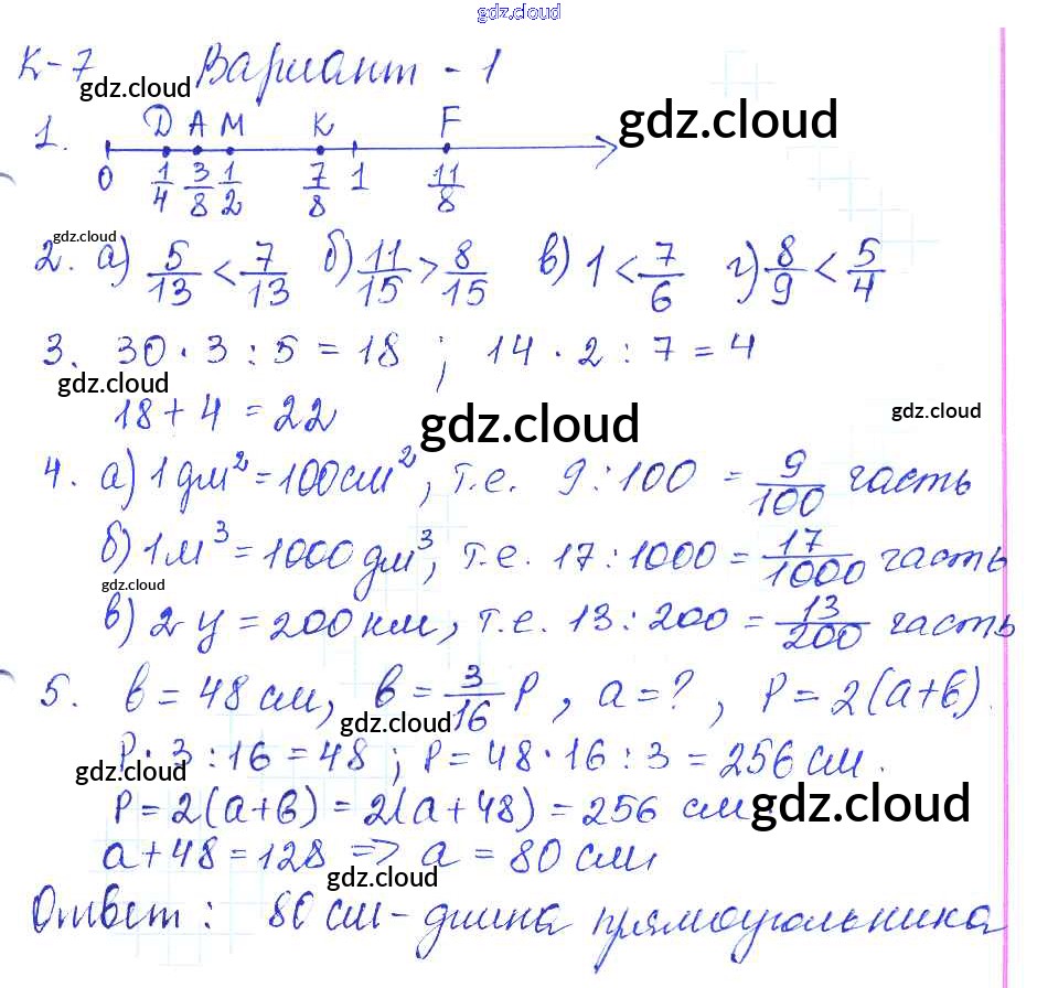 Ответы к КР-7. Варианты по Математике 5 класс Контрольные работы Жохов Мнемозина