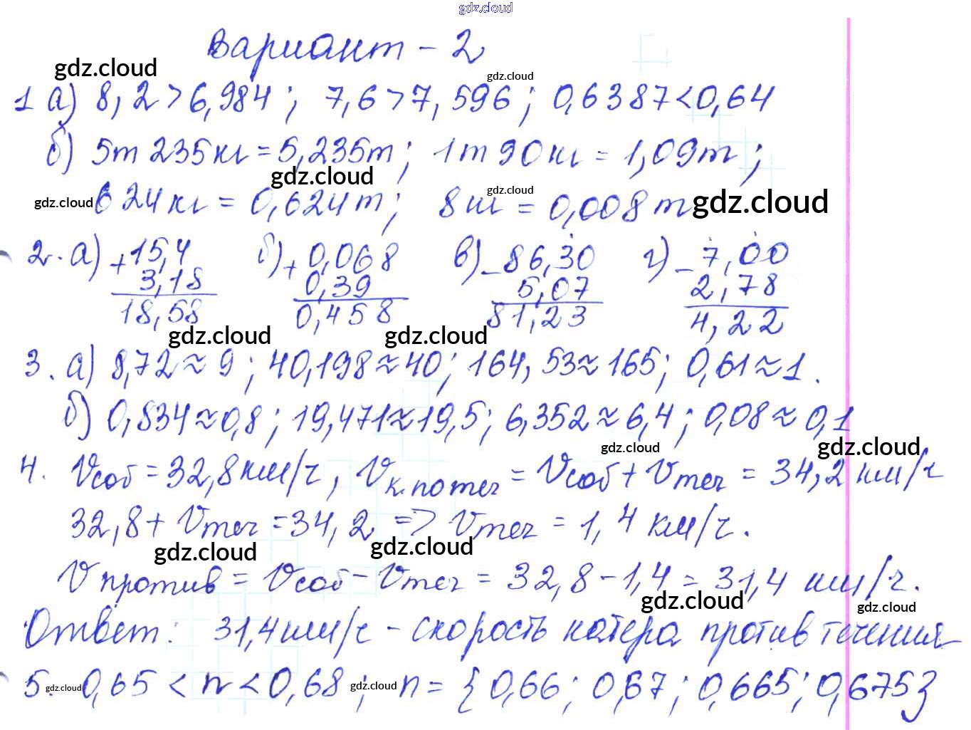 Ответы к КР-9. Варианты по Математике 5 класс Контрольные работы Жохов Мнемозина