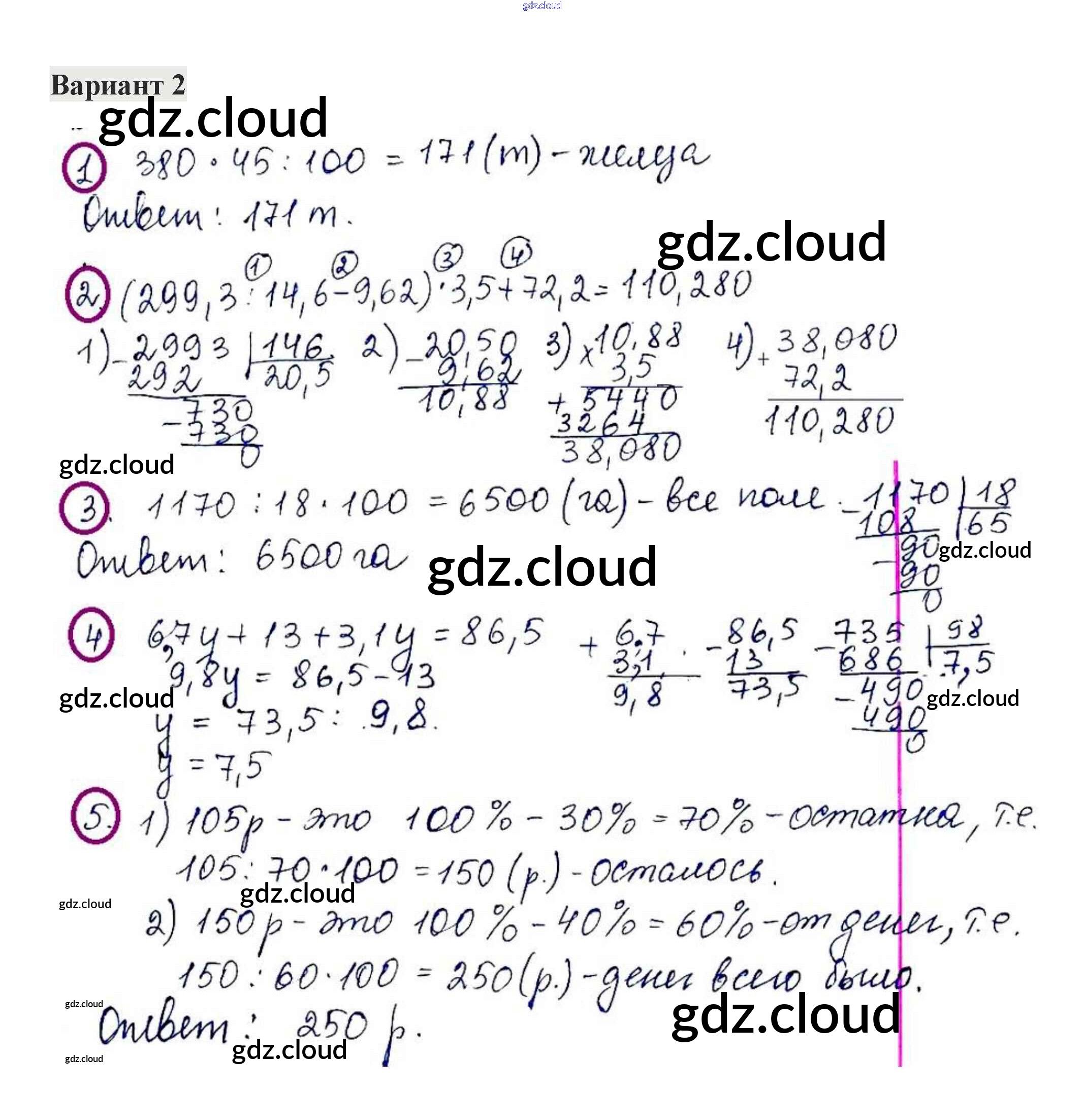 Ответ на задание 2 Контрольные работы Математика за 5 (пятый) класс Жохов, Крайнева 2012