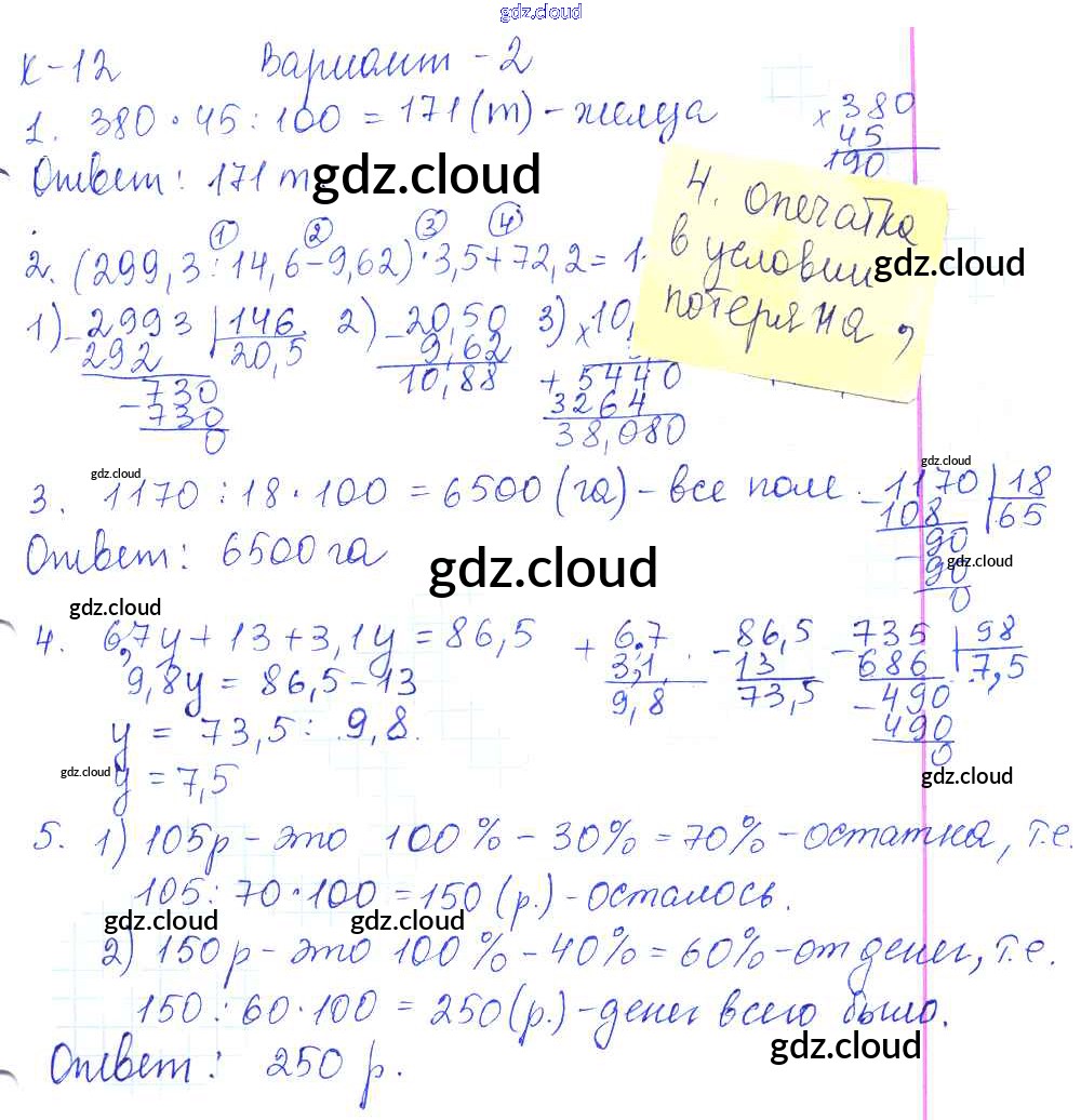 Ответы к КР-12. Варианты по Математике 5 класс Контрольные работы Жохов Мнемозина