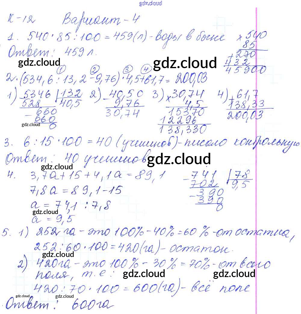 Ответы к КР-12. Варианты по Математике 5 класс Контрольные работы Жохов Мнемозина