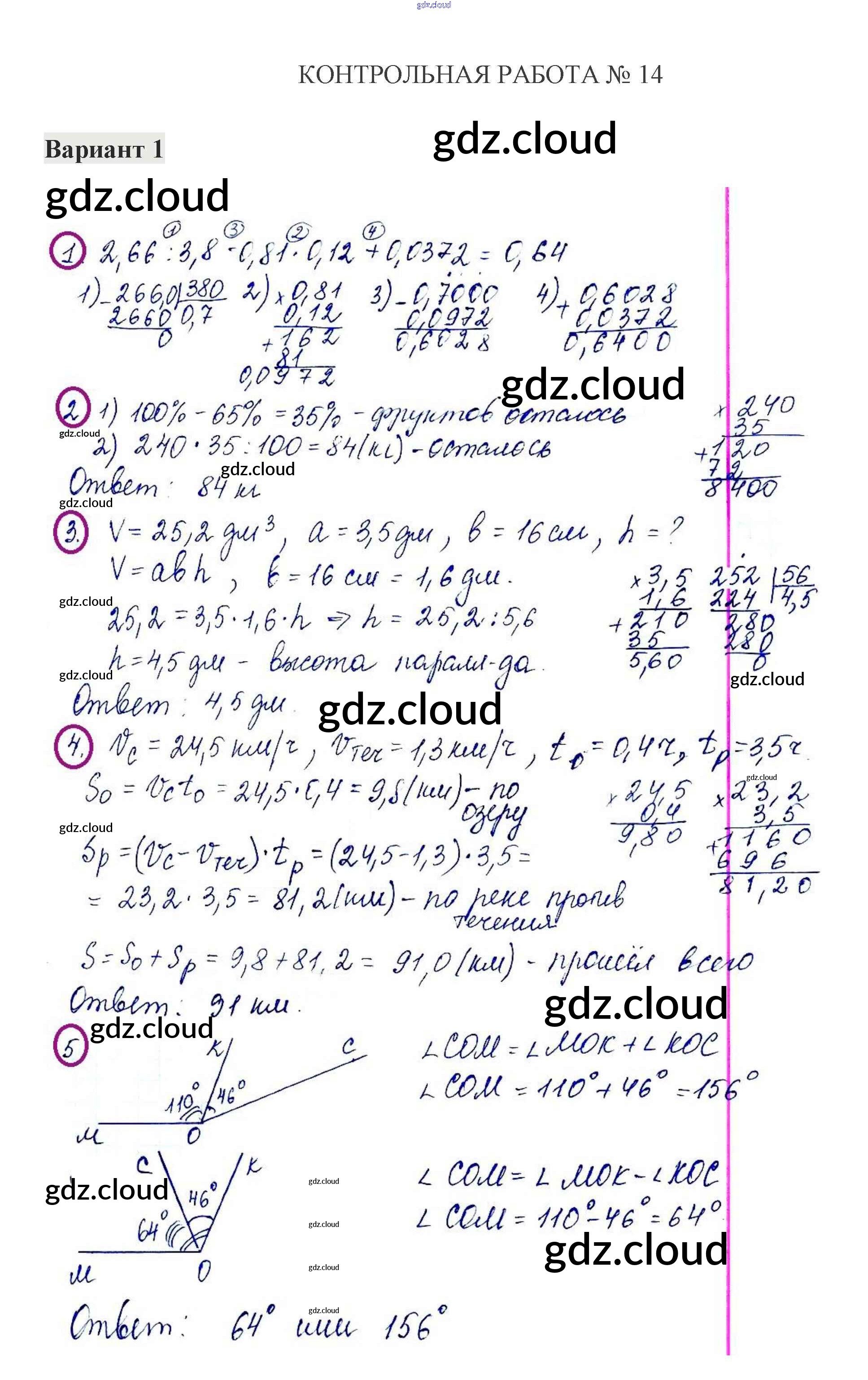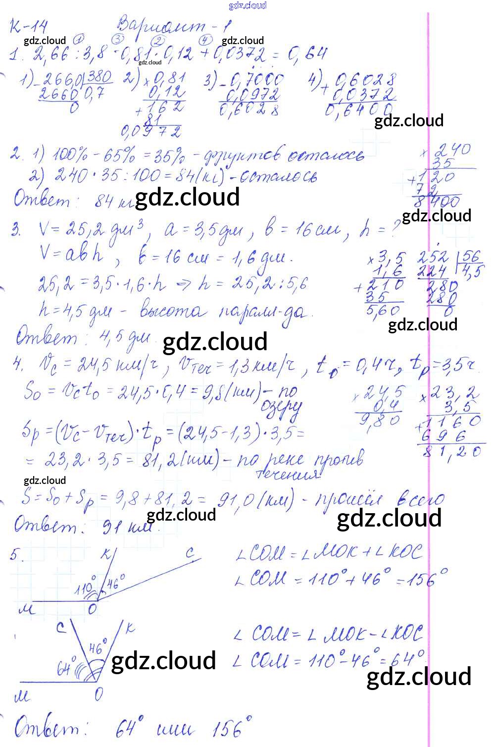 Ответы к КР-14. Варианты по Математике 5 класс Контрольные работы Жохов Мнемозина