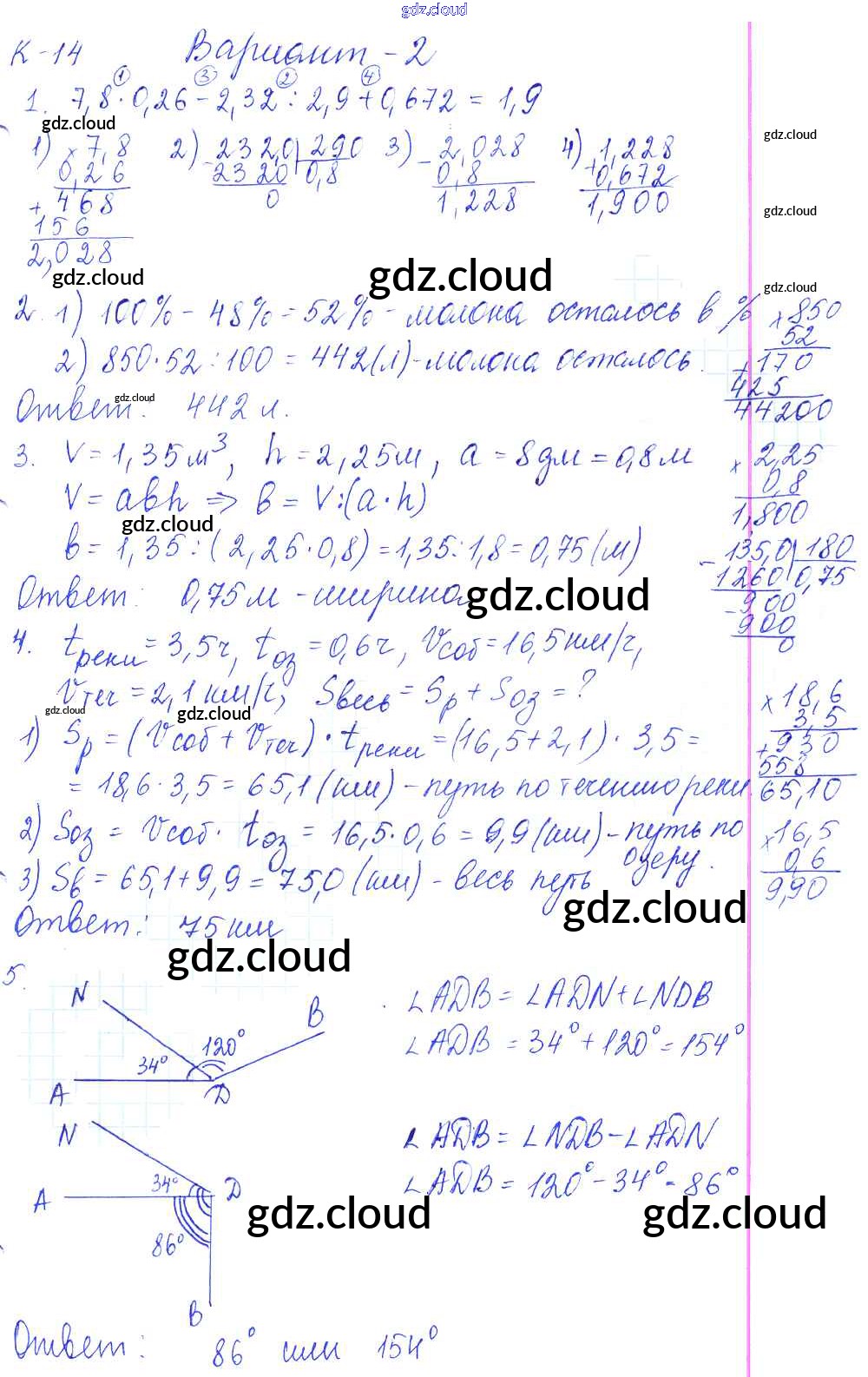 Ответы к КР-14. Варианты по Математике 5 класс Контрольные работы Жохов Мнемозина