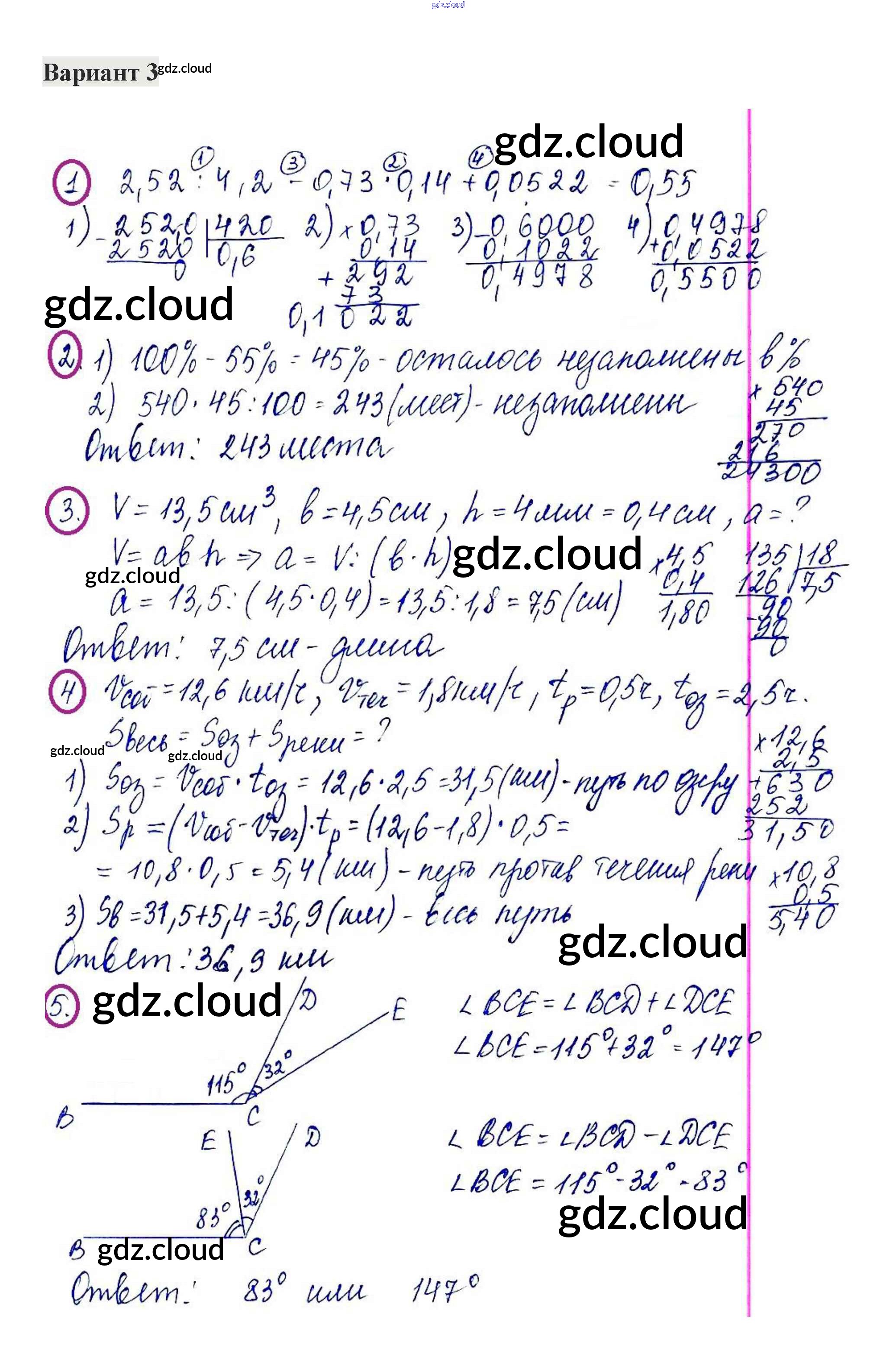 Ответ на задание 3 Контрольные работы Математика за 5 (пятый) класс Жохов, Крайнева 2012