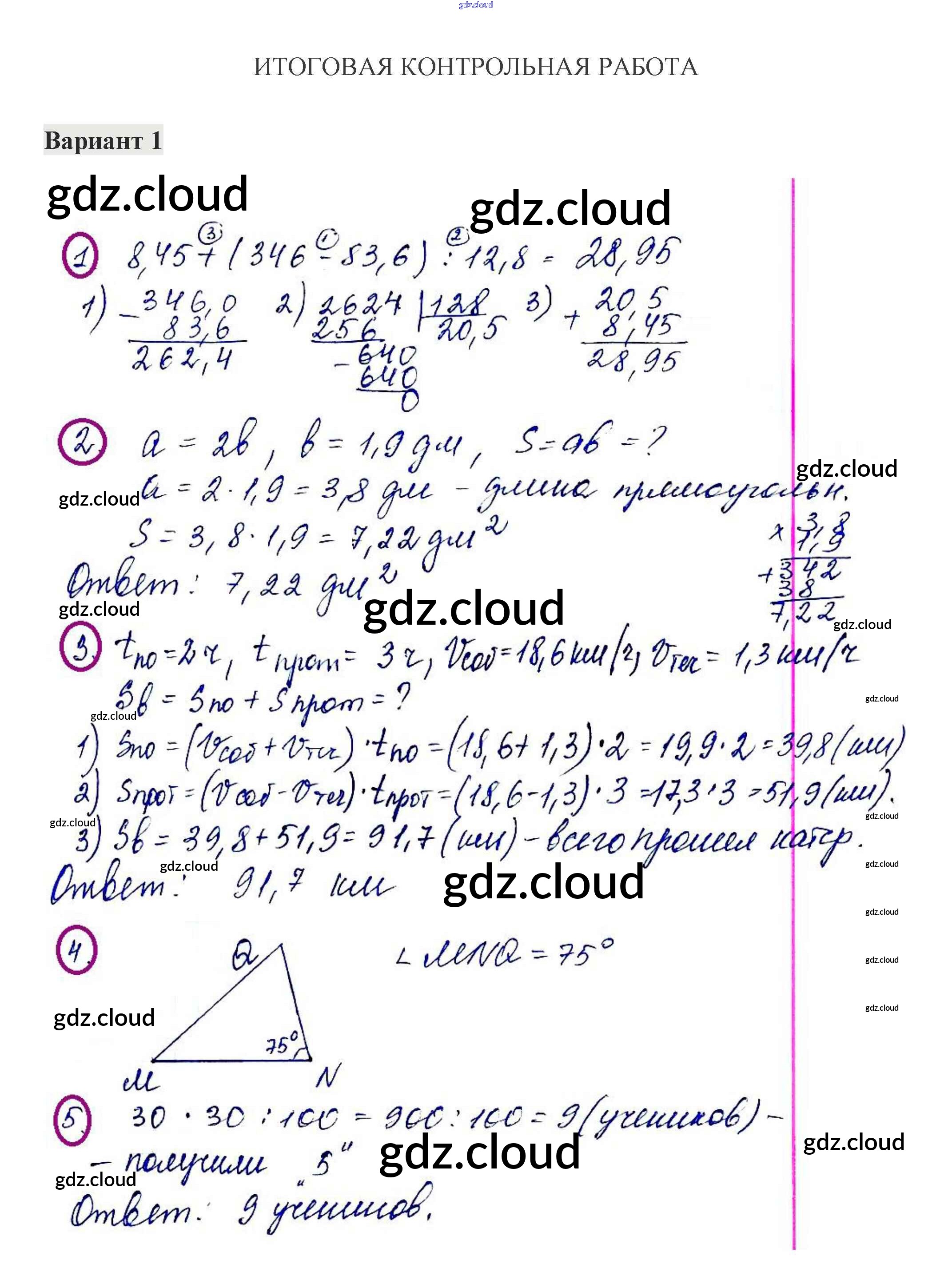 Ответы к Итоговой контрольной работе. Варианты по Математике 5 класс Контрольные работы Жохов Мнемозина