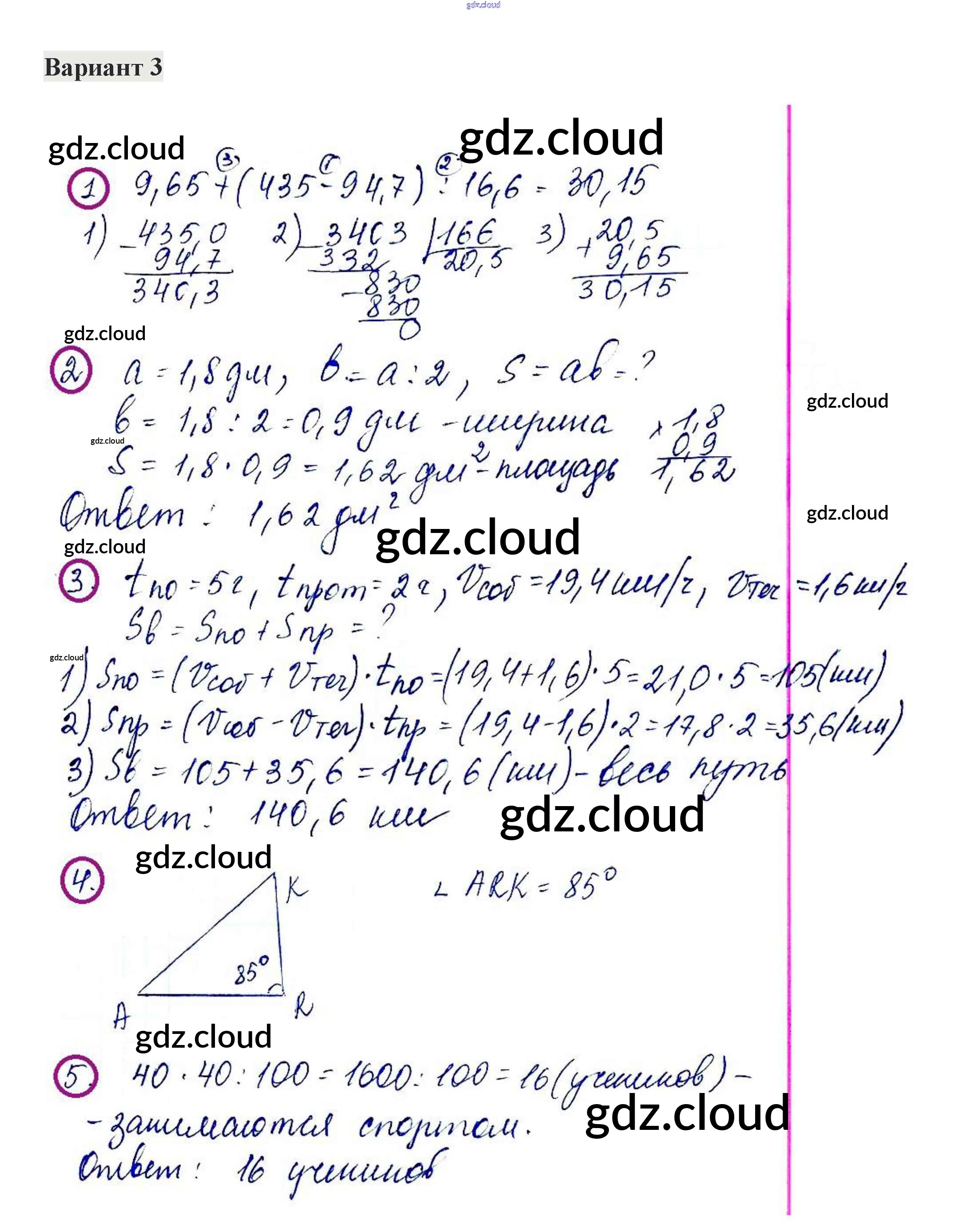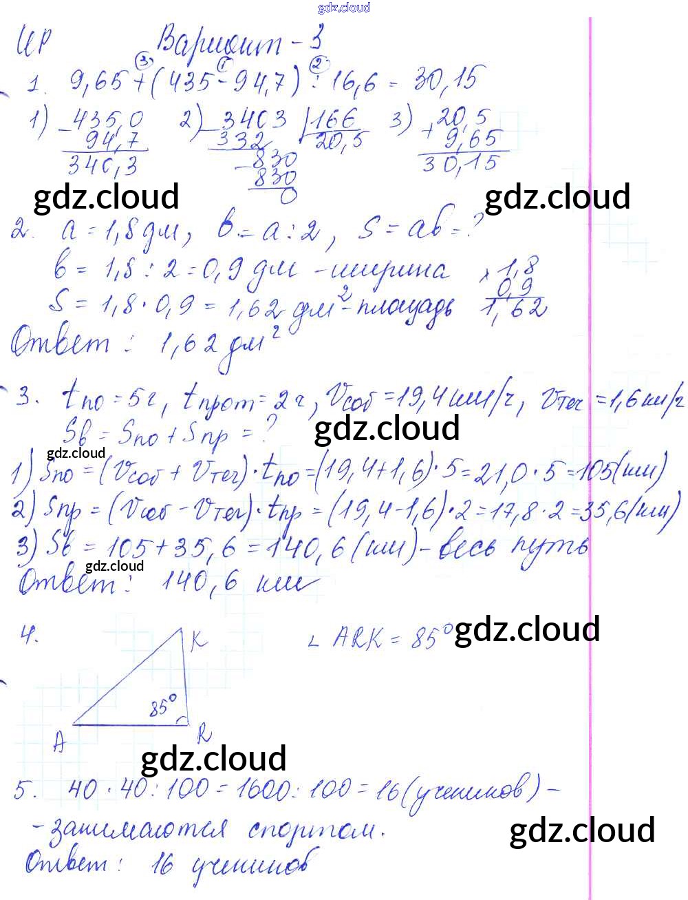 Ответ на задание 3 Контрольные работы Математика за 5 (пятый) класс Жохов, Крайнева 2012