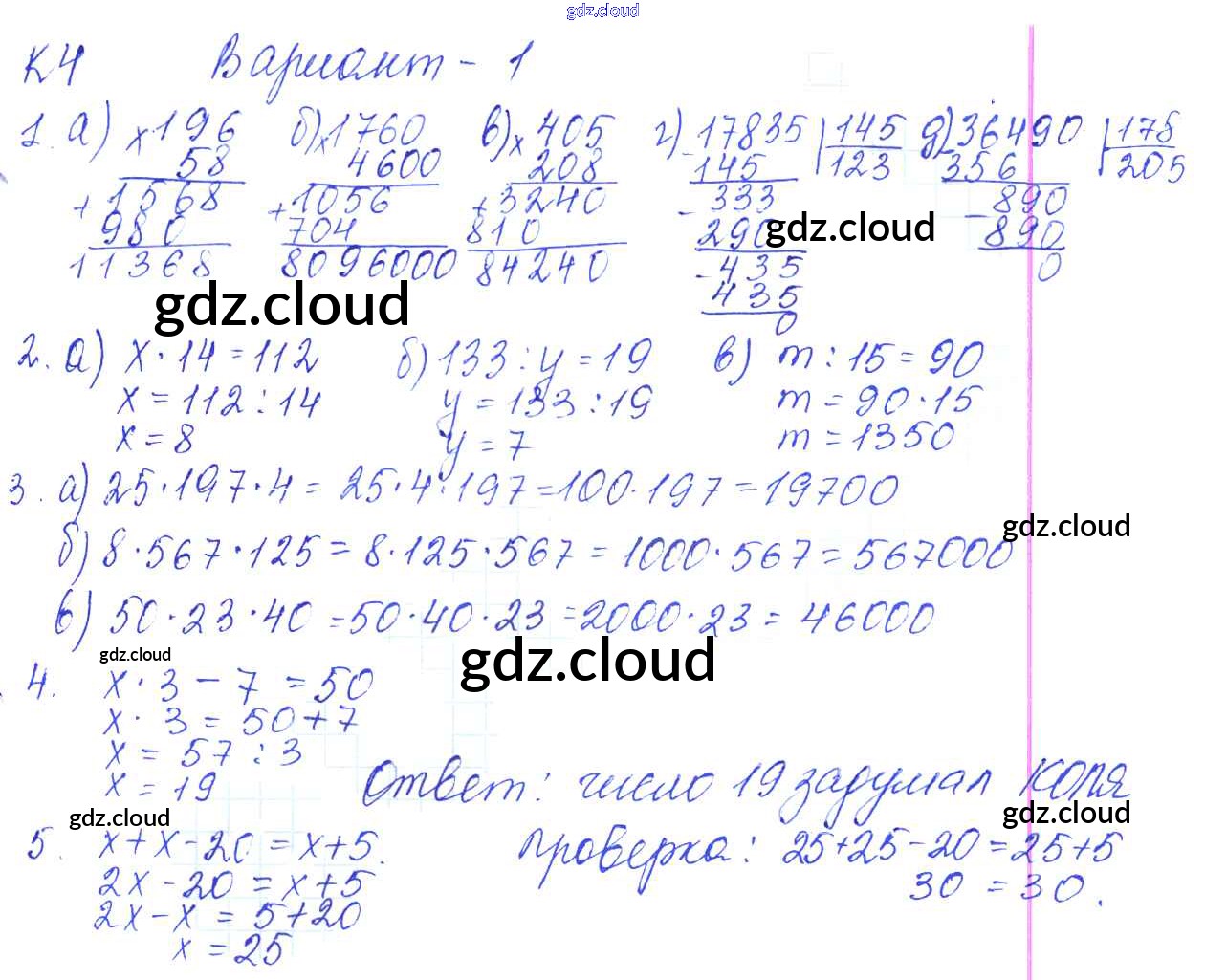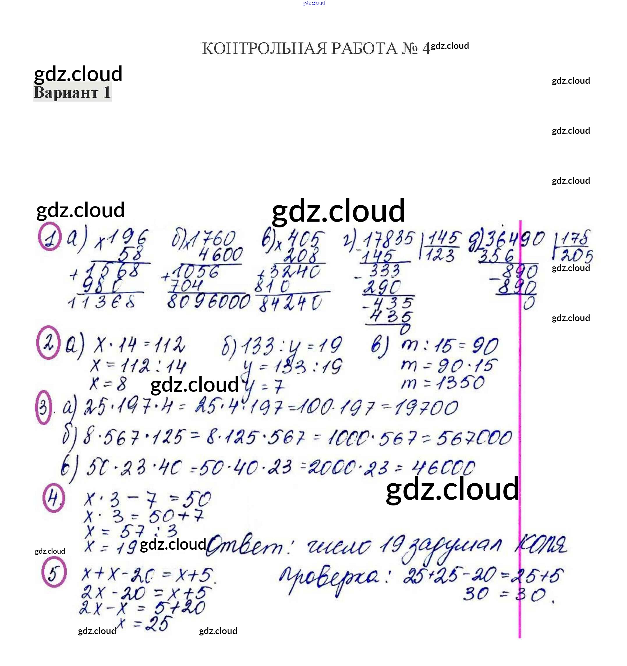Ответы к КР-4. Варианты по Математике 5 класс Контрольные работы Жохов Мнемозина