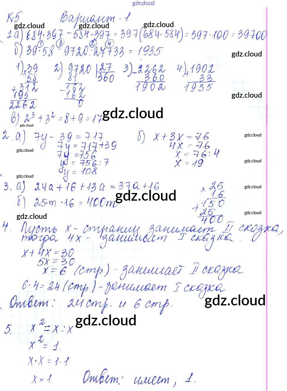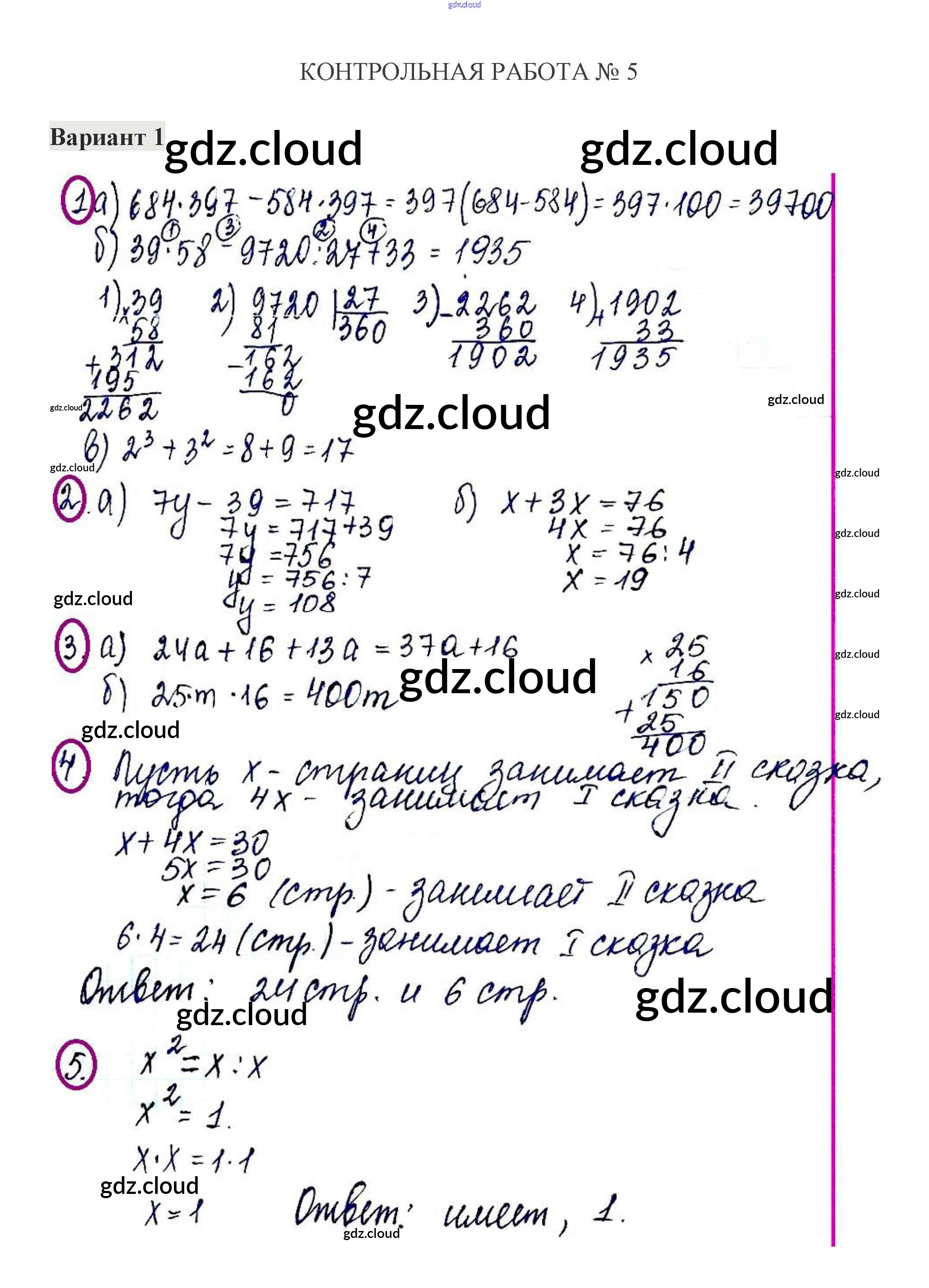 Ответы к КР-5. Варианты по Математике 5 класс Контрольные работы Жохов Мнемозина