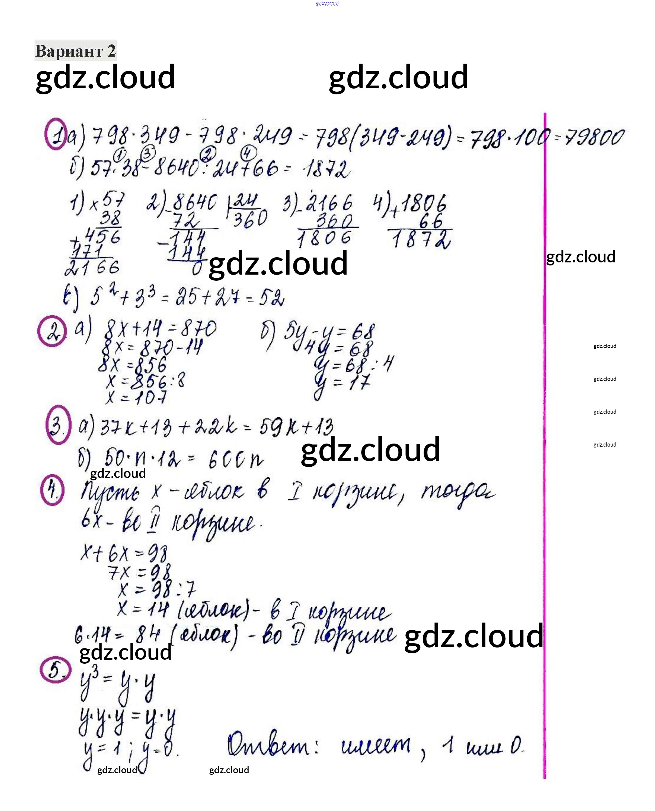 Ответы к КР-5. Варианты по Математике 5 класс Контрольные работы Жохов Мнемозина