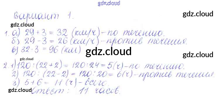 ПР №14. Задачи на движение по реке Ответы к проверочным работам по Математике 5 класс Дидактические материалы Кузнецова Академический школьный учебник Просвещение