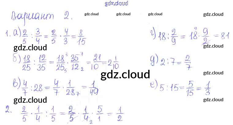 ПР №37. Деление дробей Ответы к проверочным работам по Математике 5 класс Дидактические материалы Кузнецова Академический школьный учебник Просвещение