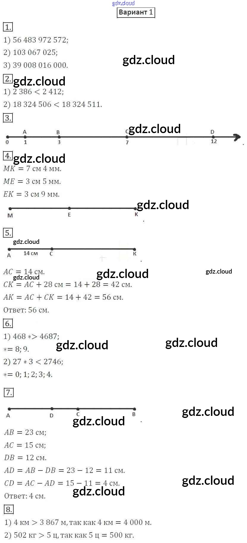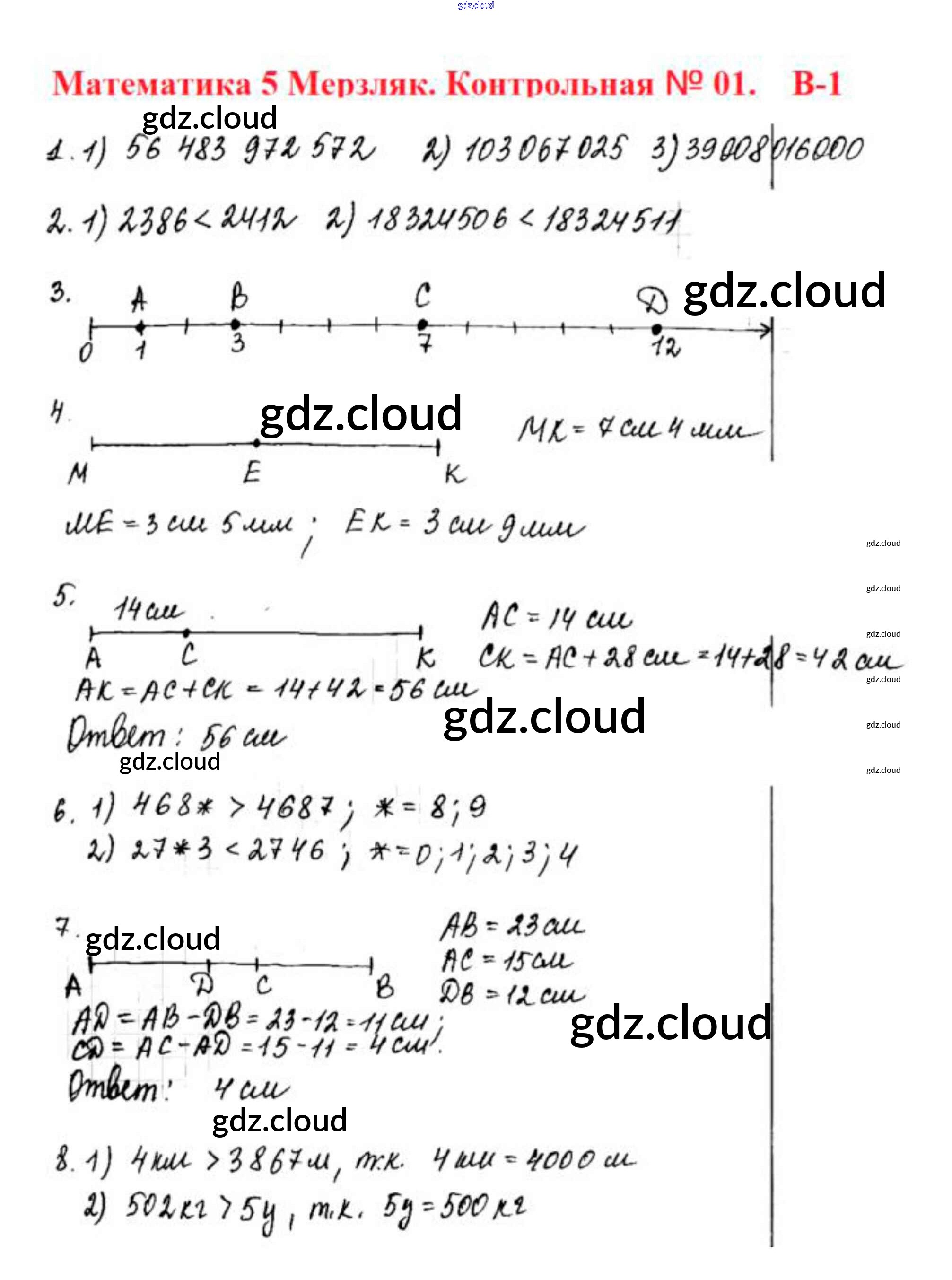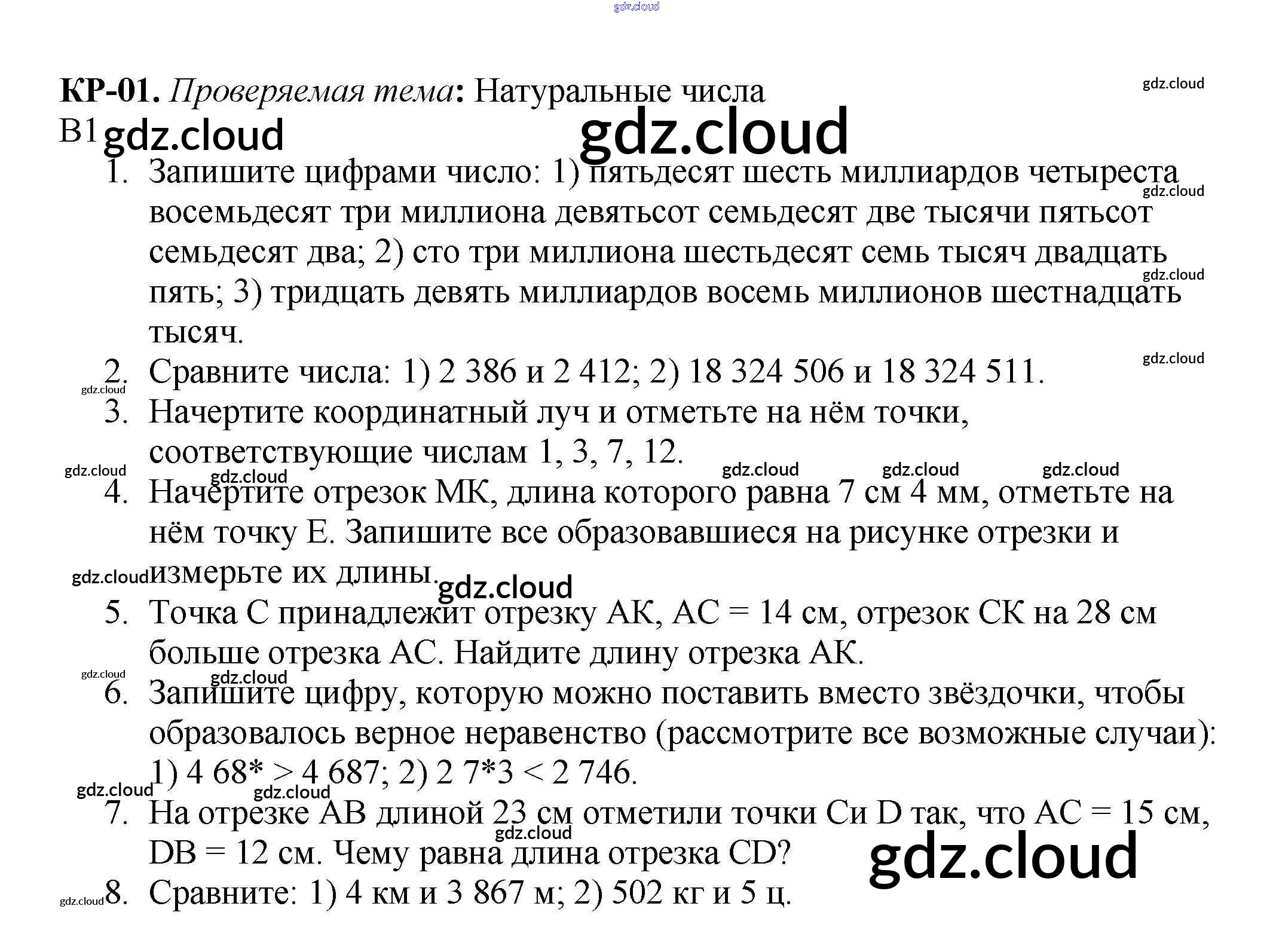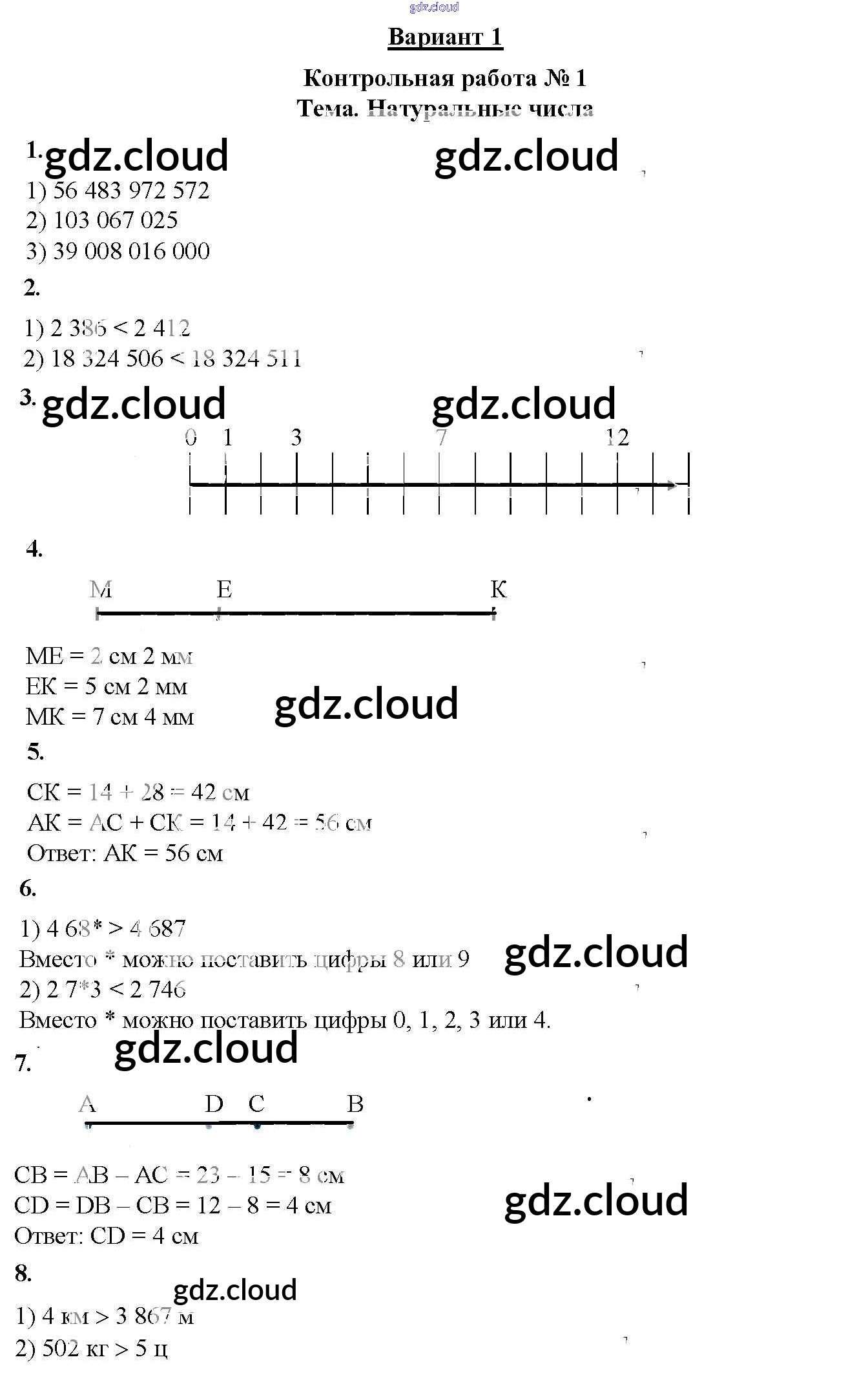 КР №1. Натуральные числа Ответы к контрольным работам по Математике 5 класс Дидактические материалы Мерзляк Алгоритм успеха Вентана-граф