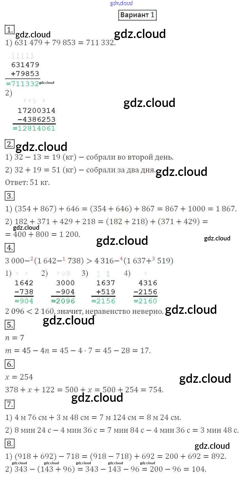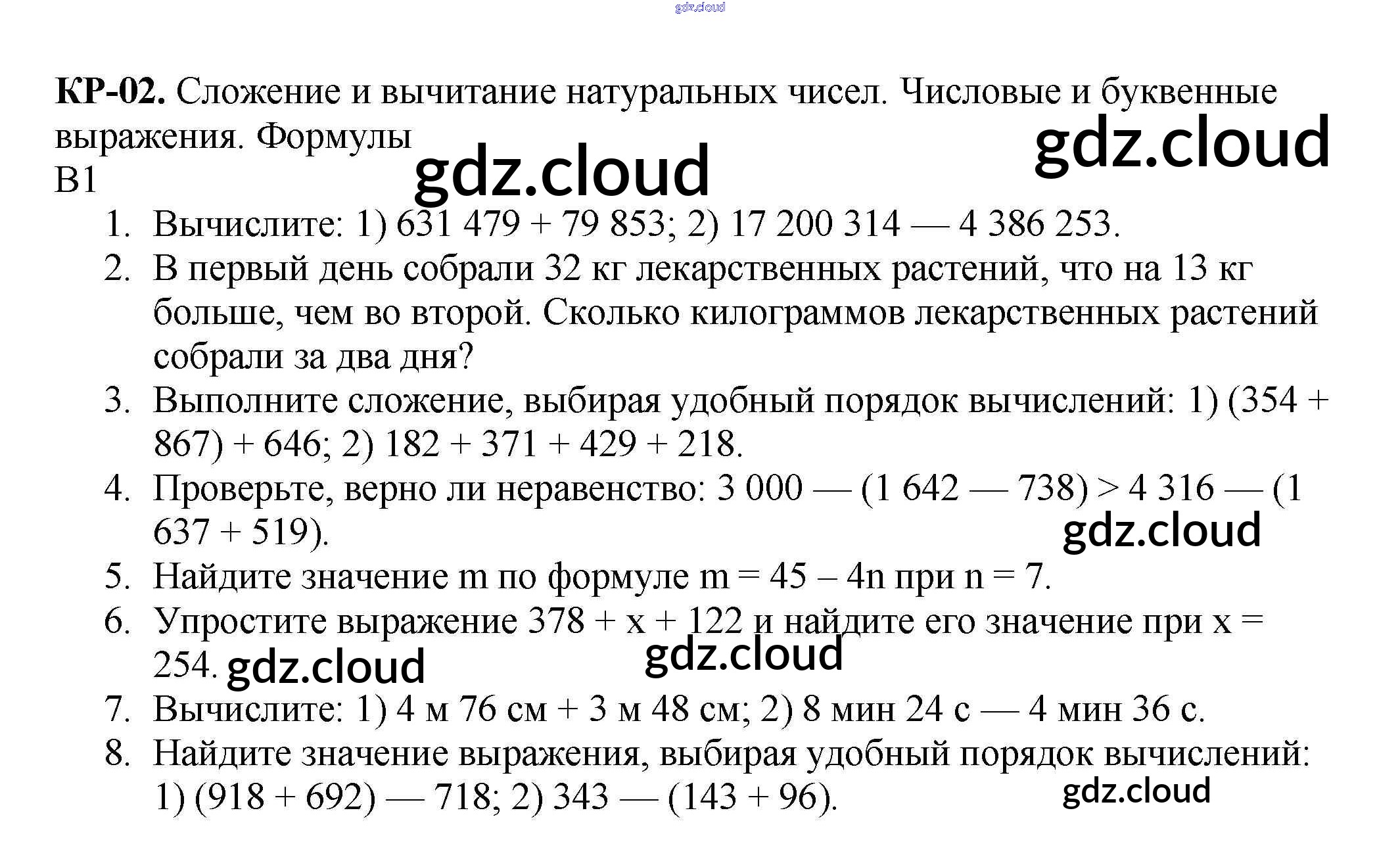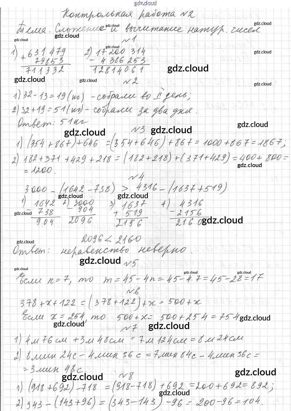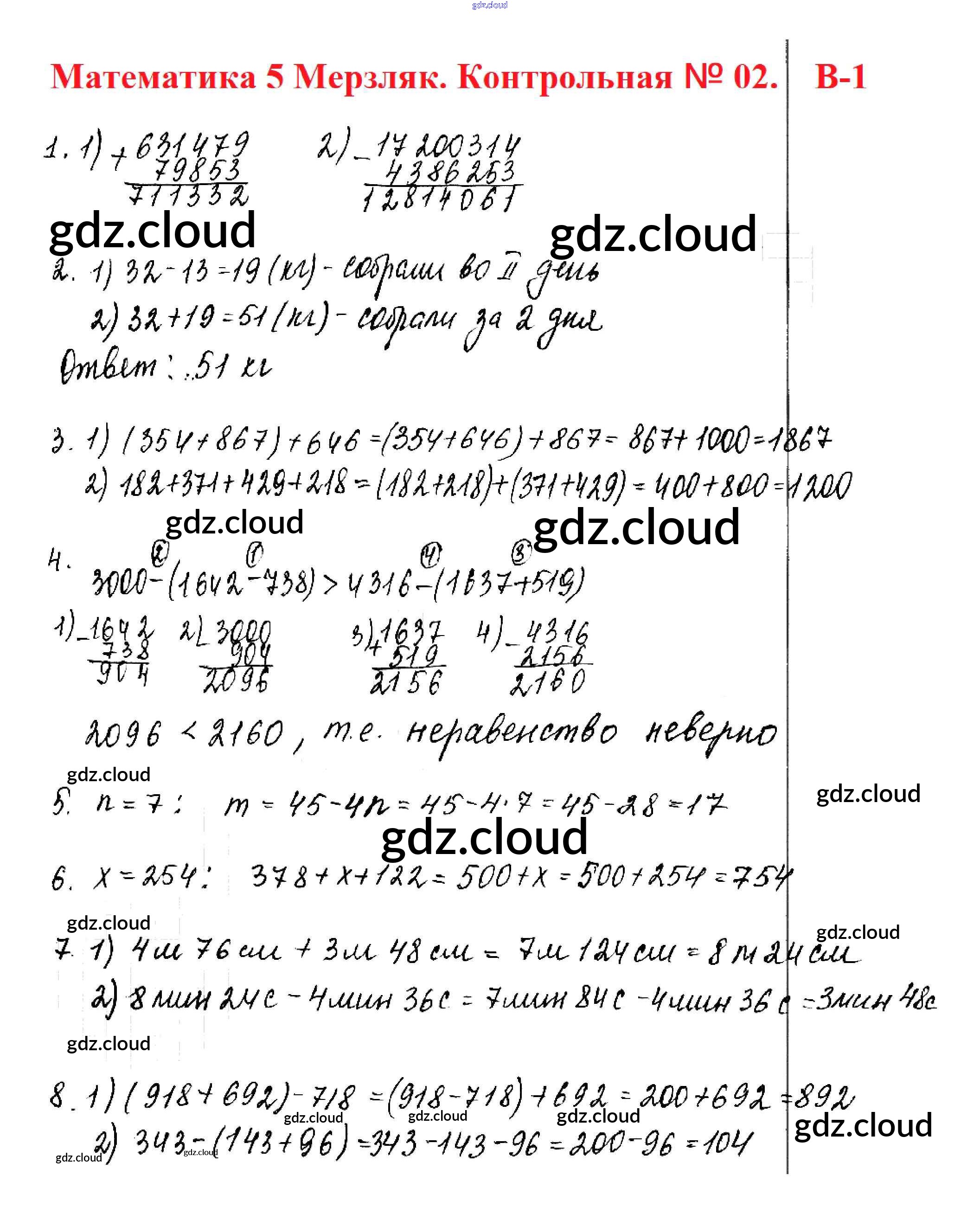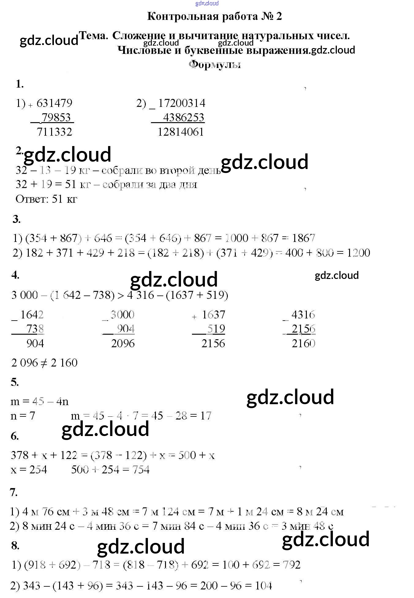 КР №2. Сложение и вычитание натуральных чисел. Числовые и буквенные выражения. Числа Ответы к контрольным работам по Математике 5 класс Дидактические материалы Мерзляк Алгоритм успеха Вентана-граф