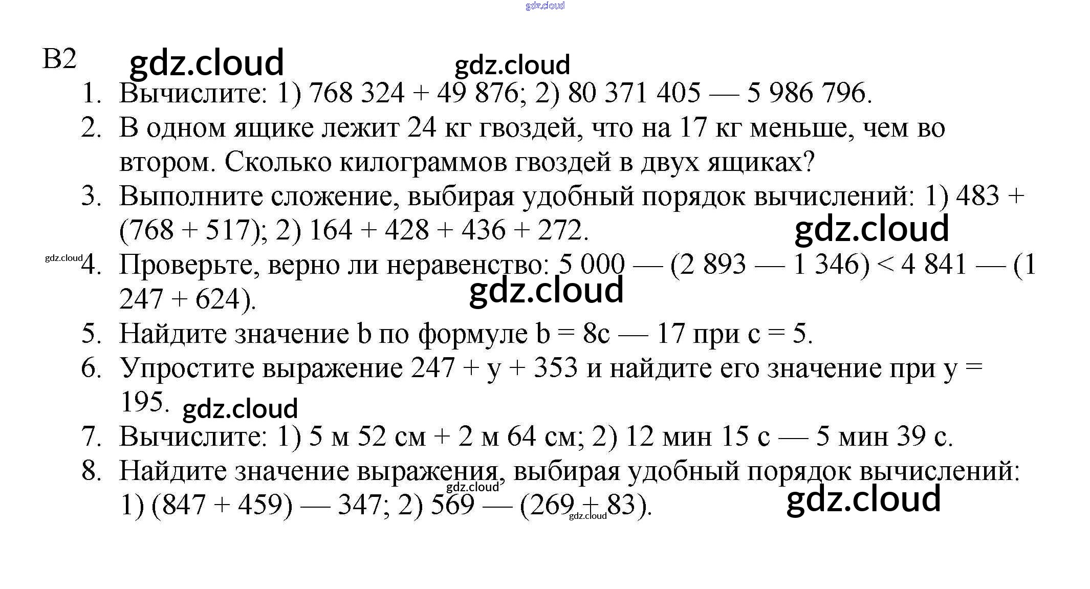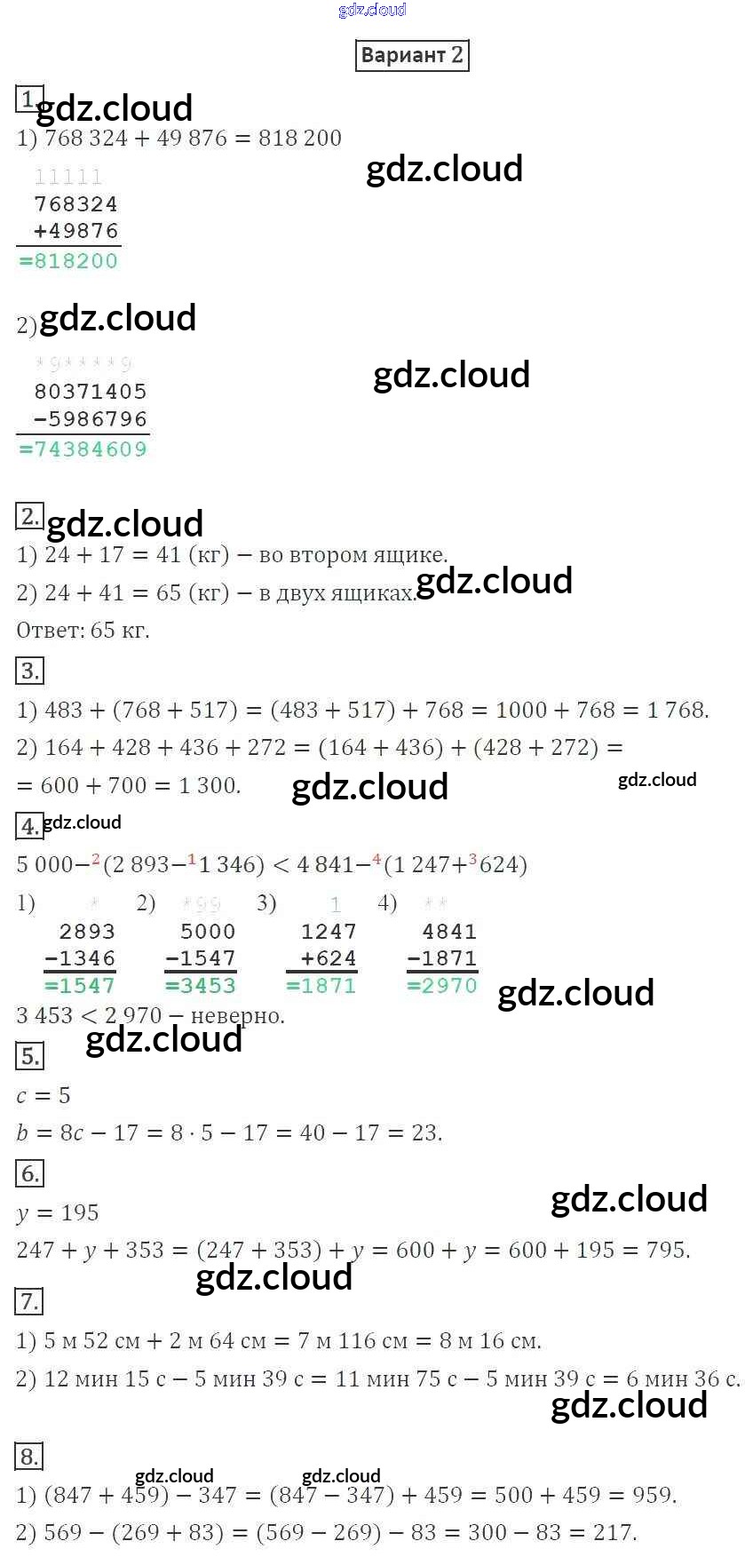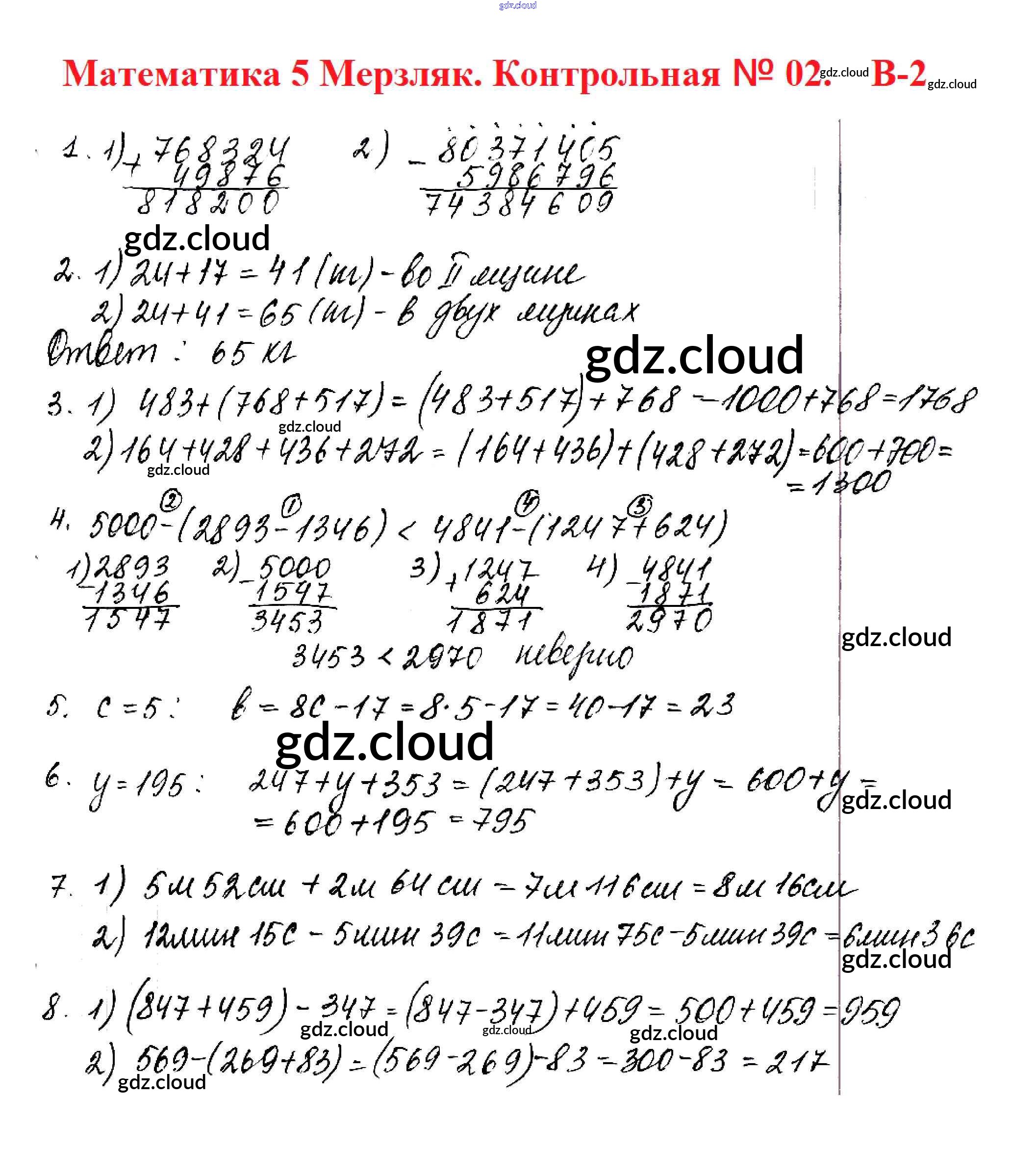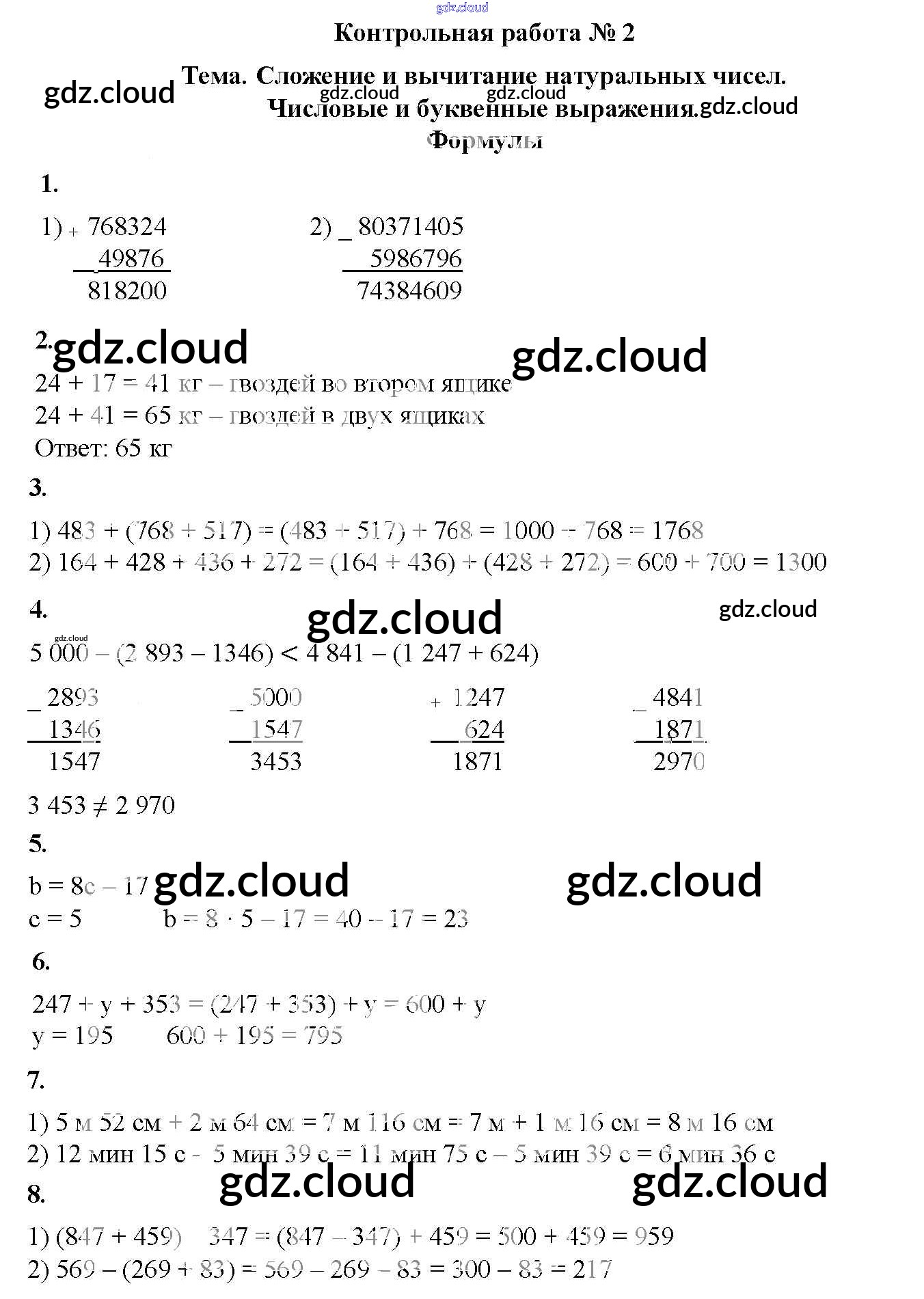 КР №2. Сложение и вычитание натуральных чисел. Числовые и буквенные выражения. Числа Ответы к контрольным работам по Математике 5 класс Дидактические материалы Мерзляк Алгоритм успеха Вентана-граф